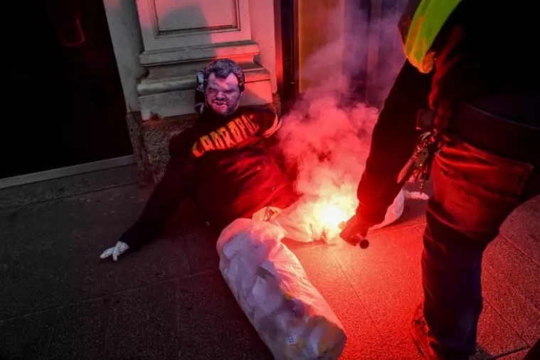 12月14日,米兰市中心成为了游行抗议者的舞台,一群身穿“黄马甲”的年轻人还点燃了一个萨尔维尼形象的纸人。