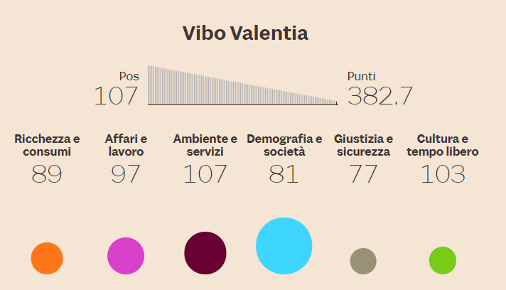 倒数三位的城市分别为塔兰托(105),福贾(106)和维博瓦伦蒂亚(107)