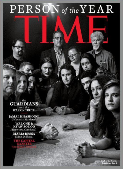Reporters sans frontieres在年度报告中回顾道,2018内共有80位记者惨遭不幸被谋害。其中一半的受害者集中在五个国家。阿富汗(15),叙利亚(11名),墨西哥(9名),也门(8名),印度(6名)。美国《时代周刊》表示2018年的年度人物属于这些死于真相的英雄。