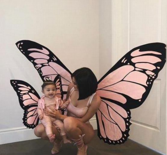 詹纳把自己扮成一个可爱的蝴蝶,同女儿度过第一个万圣节。