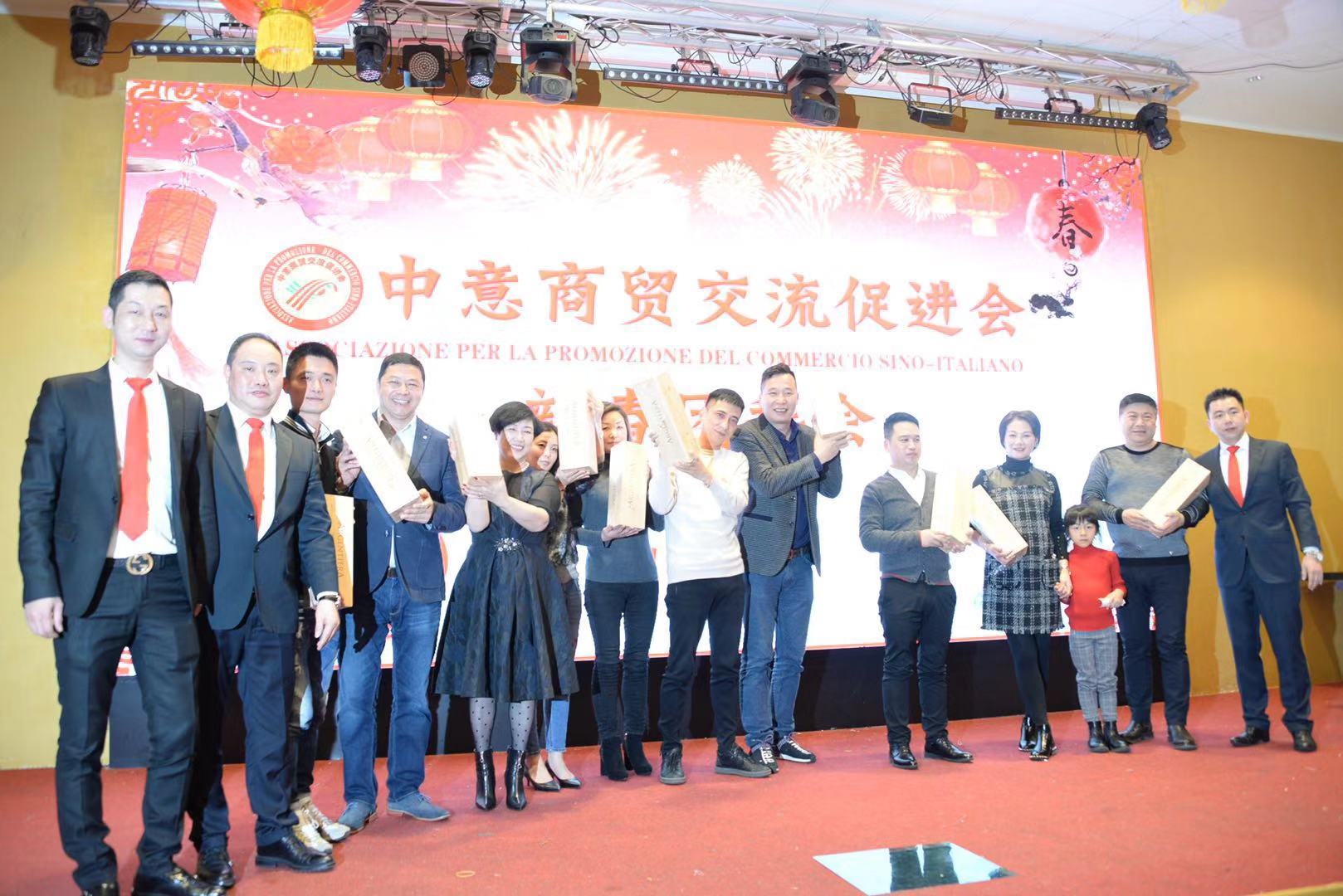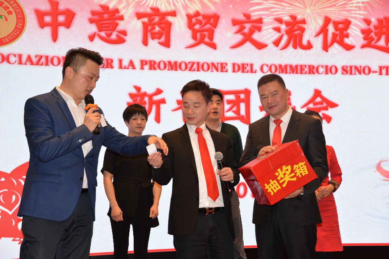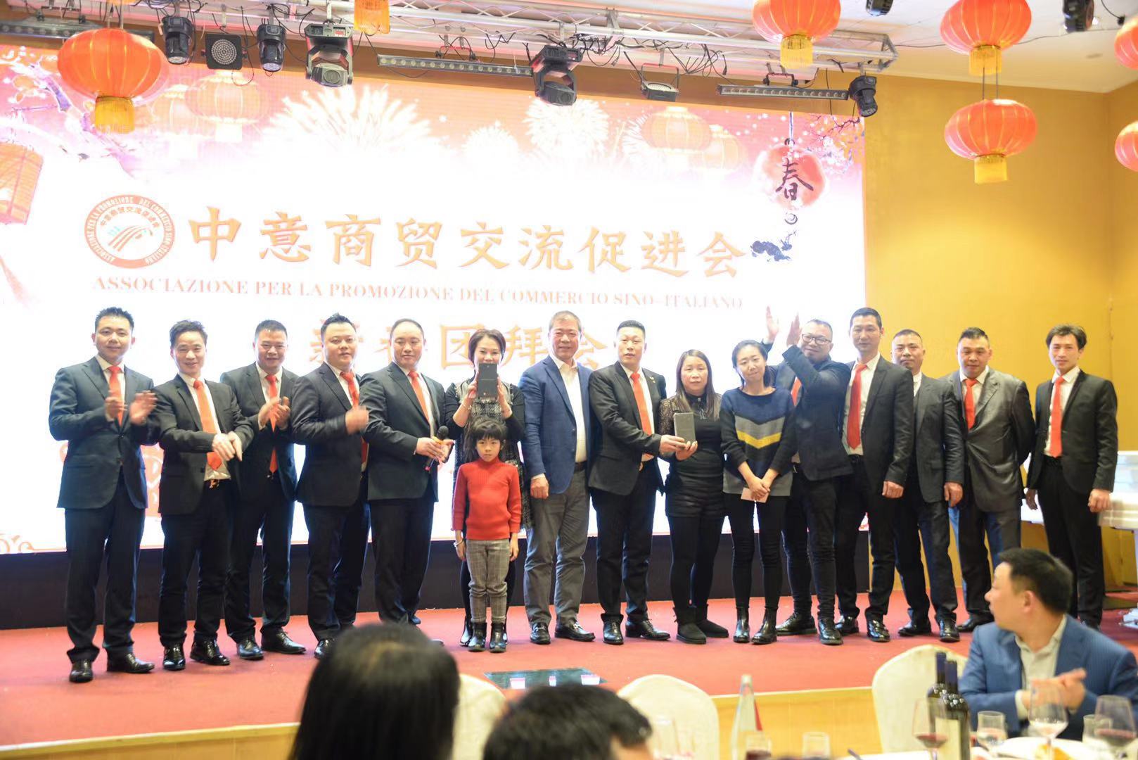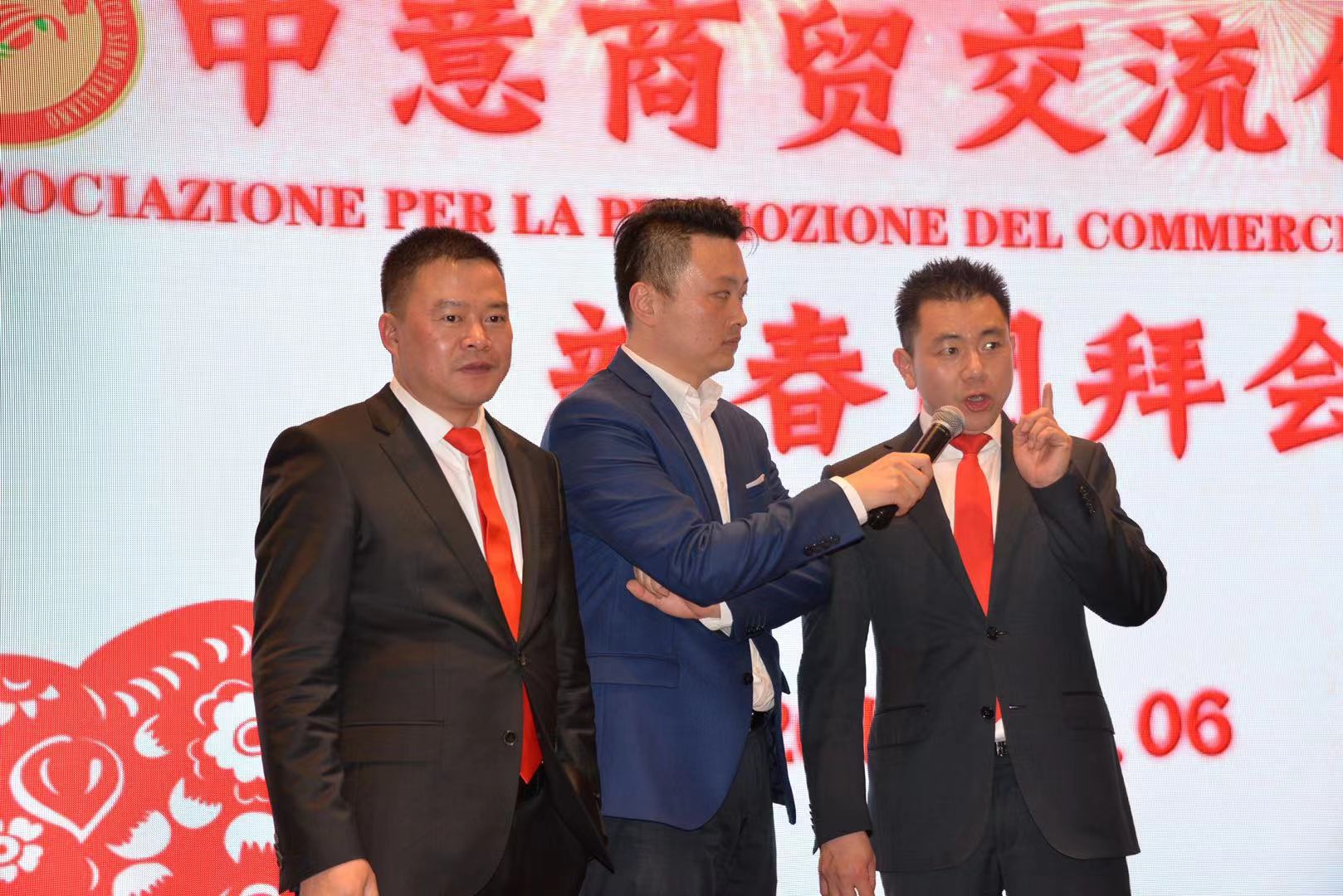 活动由中意商贸交流促进会秘书长胡志健主持,日前新当选的第三届会长潘寿式在会议首先做新春致词。他说,春回大地,万象更新。我们告别了2018年,迎来了充满希望的2019年。新的一年开启新的希望,新的岁月承载新的梦想。在辞旧迎新之际,我谨代表中意商贸交流促进会全体理事会成员,对出席今晚活动的所有嘉宾表示最热烈的欢迎和衷心的感谢!2018年,我们促进会是在米兰总领馆的指导下,在兄弟侨团的关心下,在全体理事会成员的努下,经过一年的风雨洗礼已茁壮成长为今天社会信誉度较高的社会团体。具体地突出表现在二个方面:(一)参与公益活动,慈善资助、奉献爱心。(二)弘扬中化文化,实现民族复兴。过去一年的工作,尽管有了一定的进步和成绩,但在一些方面仍然存在着不足。只有更好的总结过去,才能更好的展望未来。新的一年,我们中意商贸交流促进会始终秉承创会宗旨,立足侨界,服务华人社会,努力构建米兰侨社的和谐!新的一年,我们全体理事会成员团结一心,克服困难,奋发有为,把各项会务工作取得新的成绩,共同开创更为辉煌灿烂的明天!