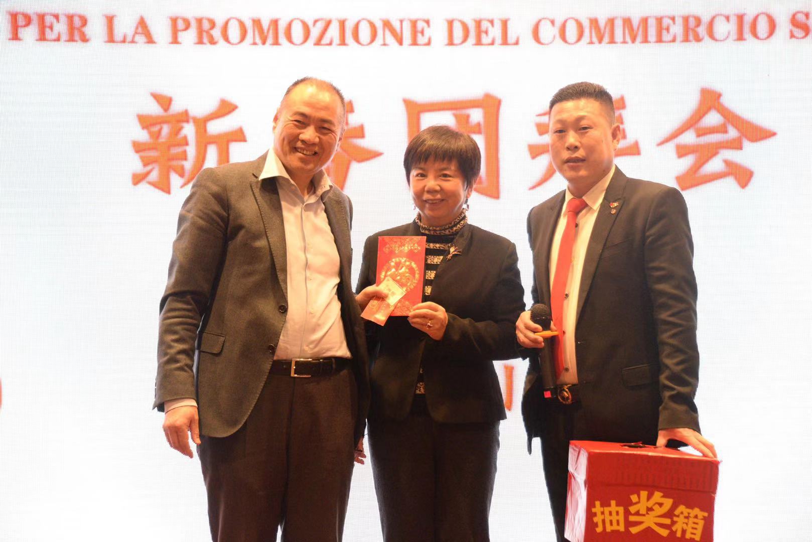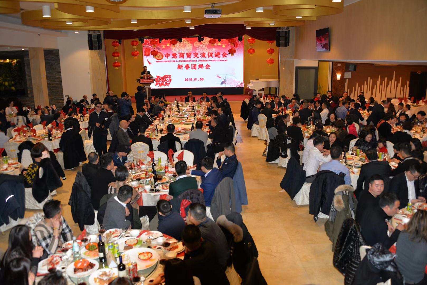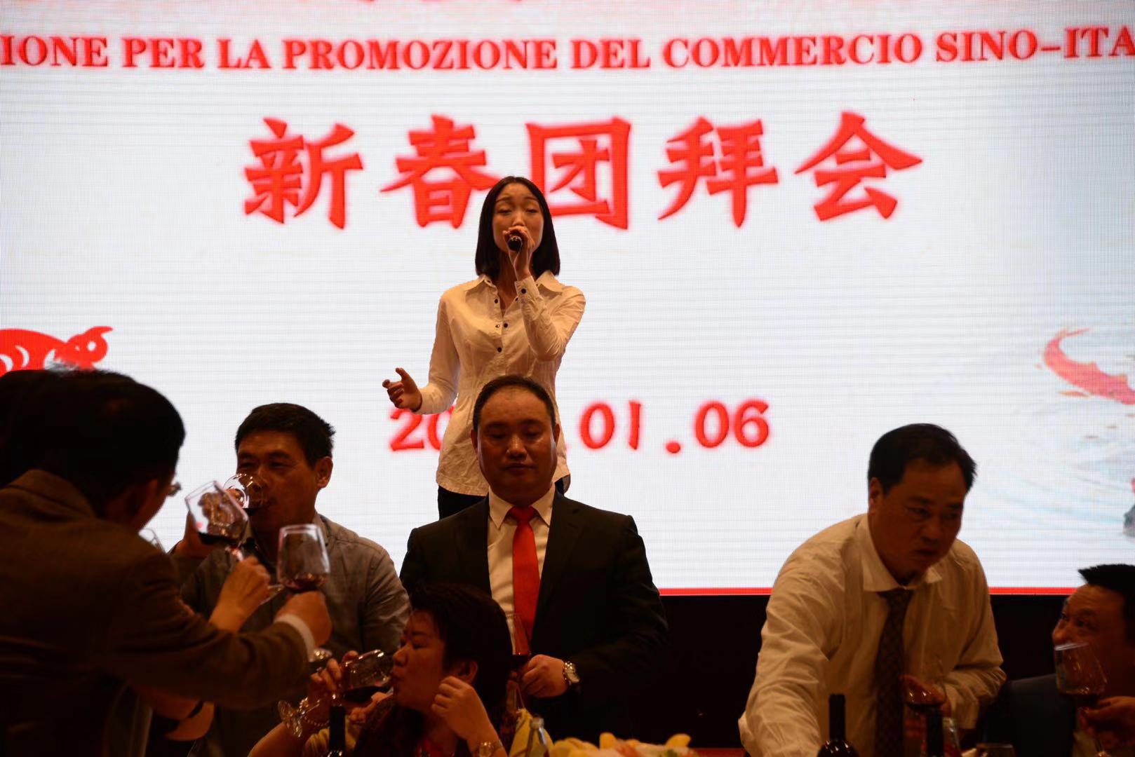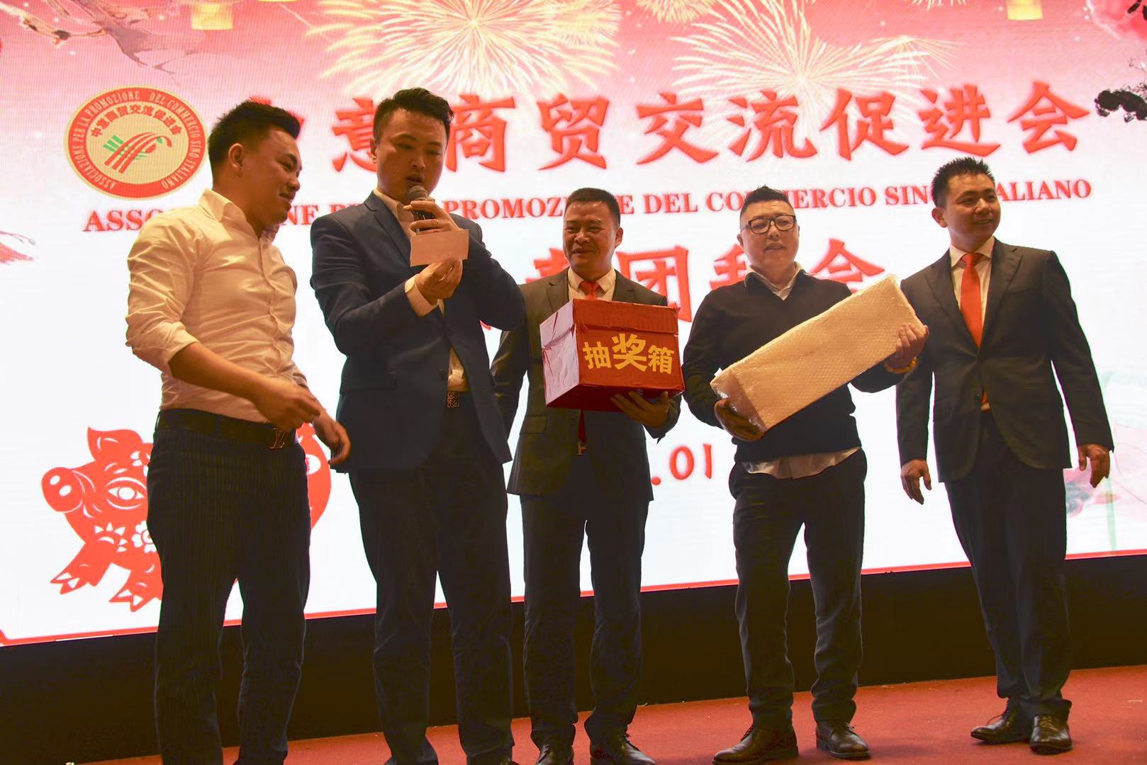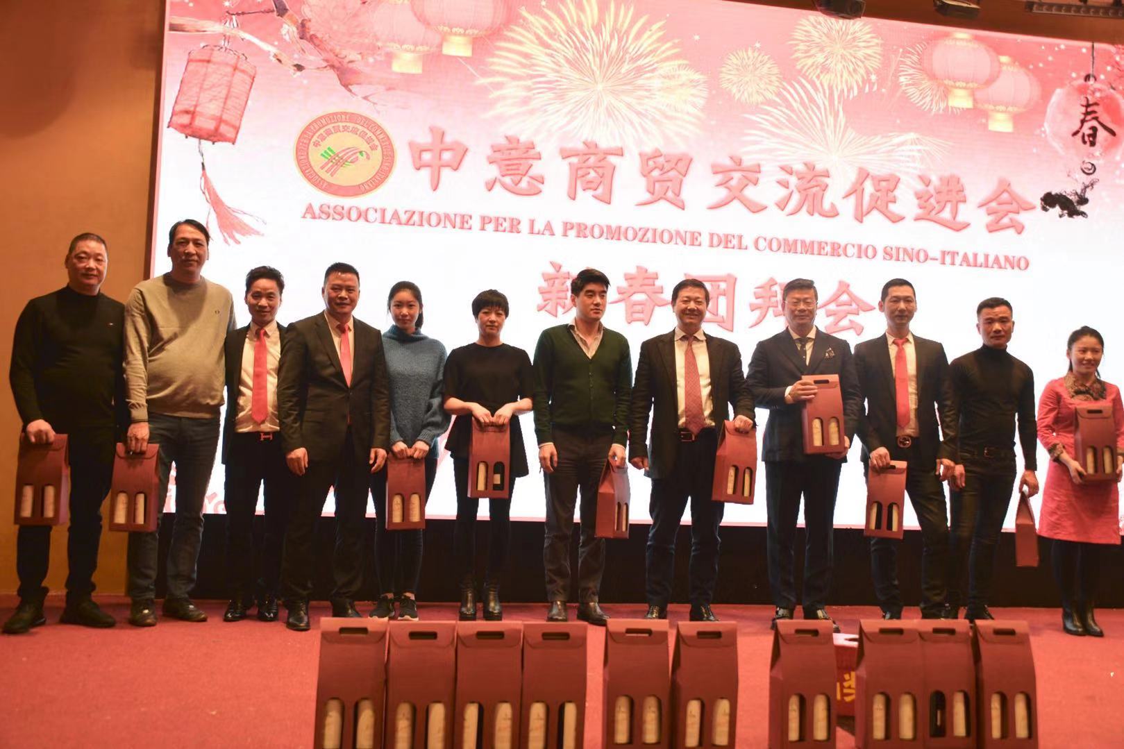 活动由中意商贸交流促进会秘书长胡志健主持,日前新当选的第三届会长潘寿式在会议首先做新春致词。他说,春回大地,万象更新。我们告别了2018年,迎来了充满希望的2019年。新的一年开启新的希望,新的岁月承载新的梦想。在辞旧迎新之际,我谨代表中意商贸交流促进会全体理事会成员,对出席今晚活动的所有嘉宾表示最热烈的欢迎和衷心的感谢!2018年,我们促进会是在米兰总领馆的指导下,在兄弟侨团的关心下,在全体理事会成员的努下,经过一年的风雨洗礼已茁壮成长为今天社会信誉度较高的社会团体。具体地突出表现在二个方面:(一)参与公益活动,慈善资助、奉献爱心。(二)弘扬中化文化,实现民族复兴。过去一年的工作,尽管有了一定的进步和成绩,但在一些方面仍然存在着不足。只有更好的总结过去,才能更好的展望未来。新的一年,我们中意商贸交流促进会始终秉承创会宗旨,立足侨界,服务华人社会,努力构建米兰侨社的和谐!新的一年,我们全体理事会成员团结一心,克服困难,奋发有为,把各项会务工作取得新的成绩,共同开创更为辉煌灿烂的明天!