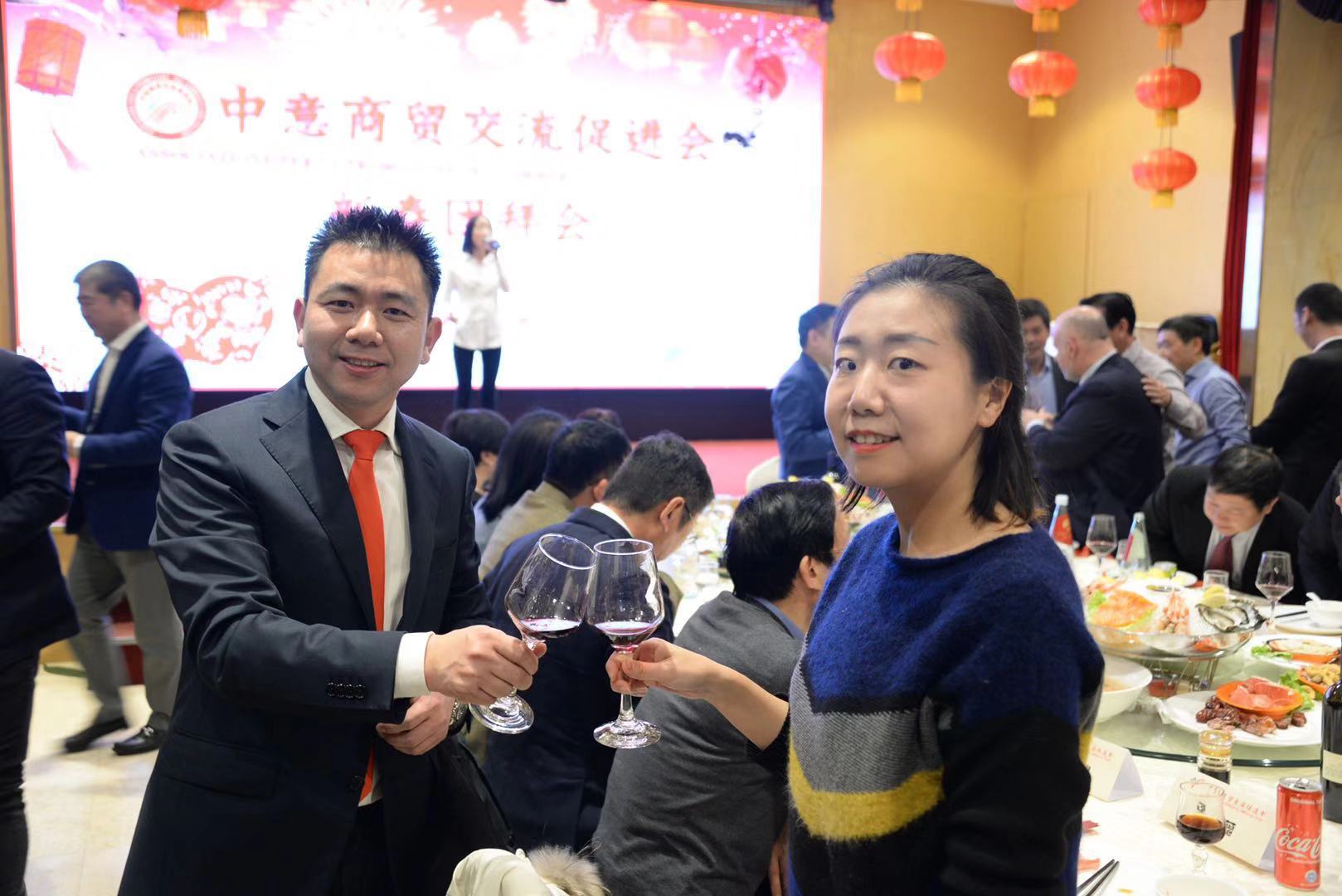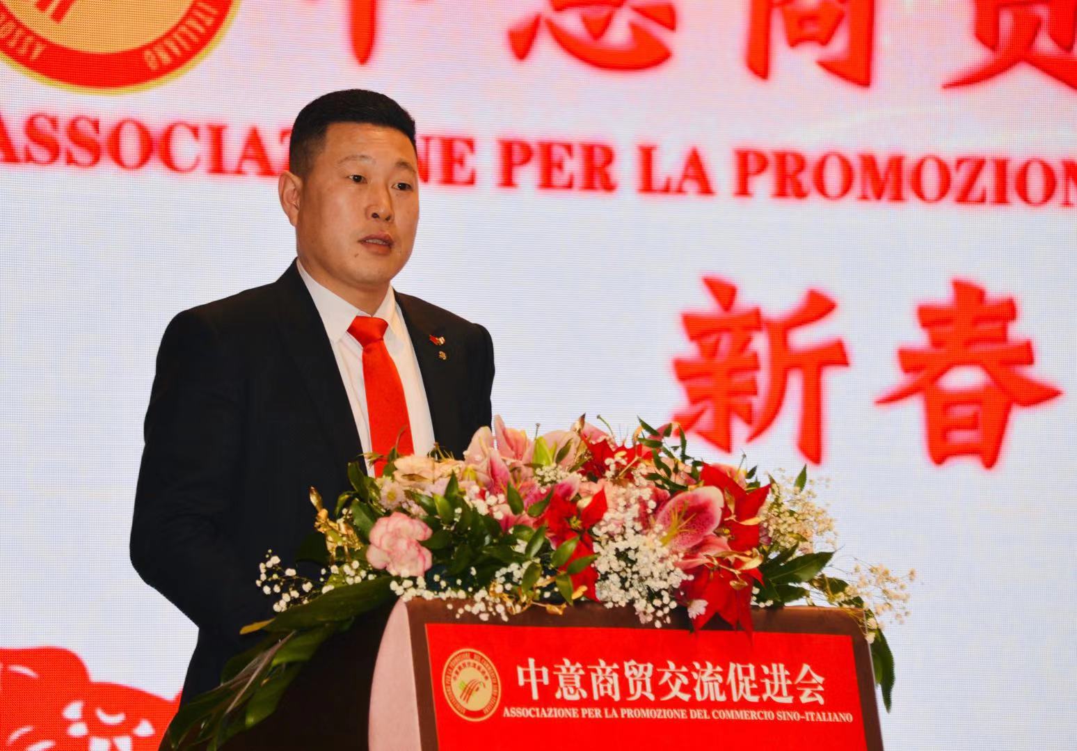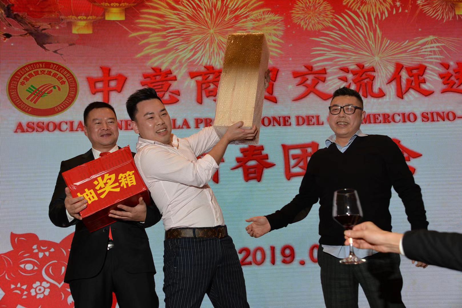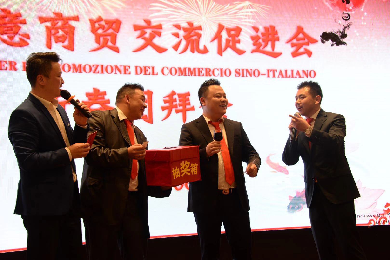 活动由中意商贸交流促进会秘书长胡志健主持,日前新当选的第三届会长潘寿式在会议首先做新春致词。他说,春回大地,万象更新。我们告别了2018年,迎来了充满希望的2019年。新的一年开启新的希望,新的岁月承载新的梦想。在辞旧迎新之际,我谨代表中意商贸交流促进会全体理事会成员,对出席今晚活动的所有嘉宾表示最热烈的欢迎和衷心的感谢!2018年,我们促进会是在米兰总领馆的指导下,在兄弟侨团的关心下,在全体理事会成员的努下,经过一年的风雨洗礼已茁壮成长为今天社会信誉度较高的社会团体。具体地突出表现在二个方面:(一)参与公益活动,慈善资助、奉献爱心。(二)弘扬中化文化,实现民族复兴。过去一年的工作,尽管有了一定的进步和成绩,但在一些方面仍然存在着不足。只有更好的总结过去,才能更好的展望未来。新的一年,我们中意商贸交流促进会始终秉承创会宗旨,立足侨界,服务华人社会,努力构建米兰侨社的和谐!新的一年,我们全体理事会成员团结一心,克服困难,奋发有为,把各项会务工作取得新的成绩,共同开创更为辉煌灿烂的明天!