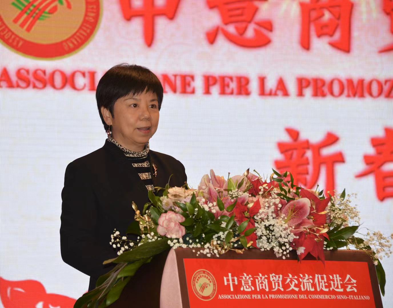 汪惠娟副总领事向中意商贸交流促进会和全体来宾致以新春祝贺,对潘寿式当选第三届会长表示祝贺。她对促进会对融入米兰侨界、积极付出给予了高度评价,希望协会在潘寿式的带领下会务更上一层楼,并表示在新的一年里,米兰总领馆将会一如既往的关心广大侨胞的生活工作创业,为领区侨胞排忧解难。