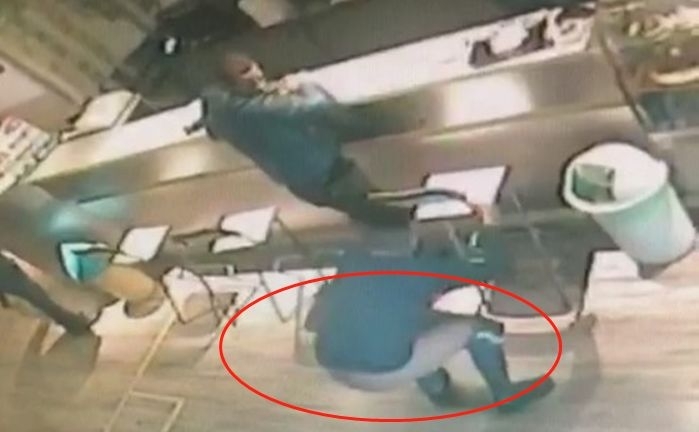 店内安装的监控记录了所发生的一切:几个年轻人出现在柜台发号施令,推搡威胁店内员工;更有甚者,一名男子进入店内,直接脱下裤子在地板上小便;还有一人被拒绝入内后,直接一拳打在了一位顾客的头上,并把他打倒在地;另一人干脆把大门的玻璃踢碎了。