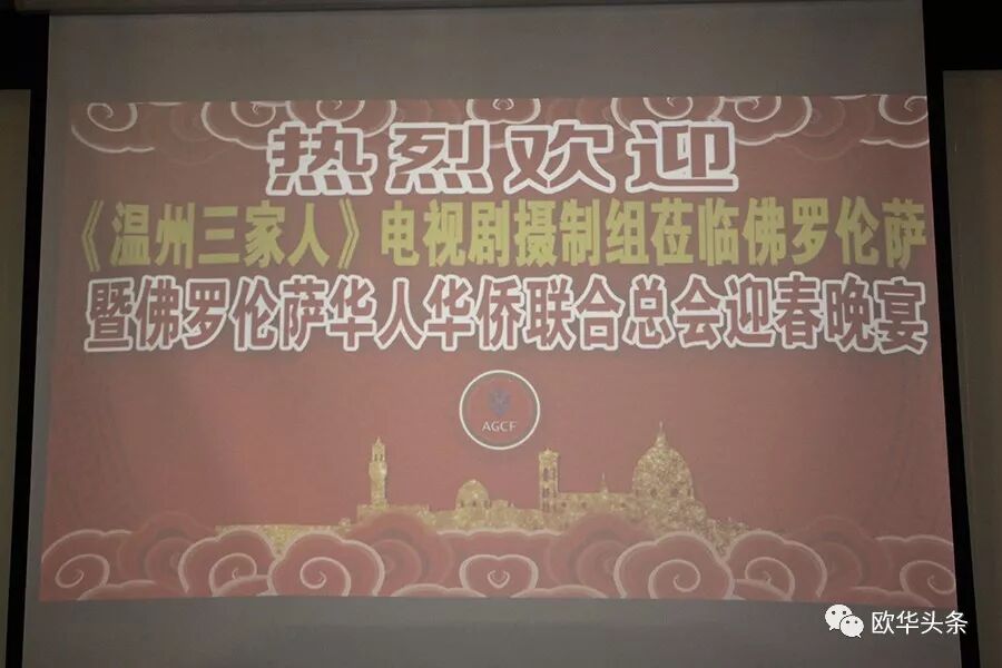 意大利《华人街》讯(记者一策):一元复始,万象更新!辞旧迎新之际,意大利佛罗伦萨华人华侨联合总会迎春晚宴于2019年1月15日晚在当地的新聚宾大酒店隆重举行,正值《温州三家人》电视剧摄制组抵达意大利佛罗伦萨,与当地侨社、华人华侨、华文学校、孔子学院、华文媒体近300人欢聚一堂,致以新春的问候和期望。中国驻佛罗伦萨总领馆王辅国总领事携总领馆全体工作人员受邀拨冗出席。