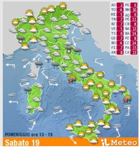 中北部地区将持续不稳定的阴雨天气,并将于20日周日开始逐渐向南部覆盖,尤其是拉齐奥沿海地区,预计将会出现雷暴天气。
