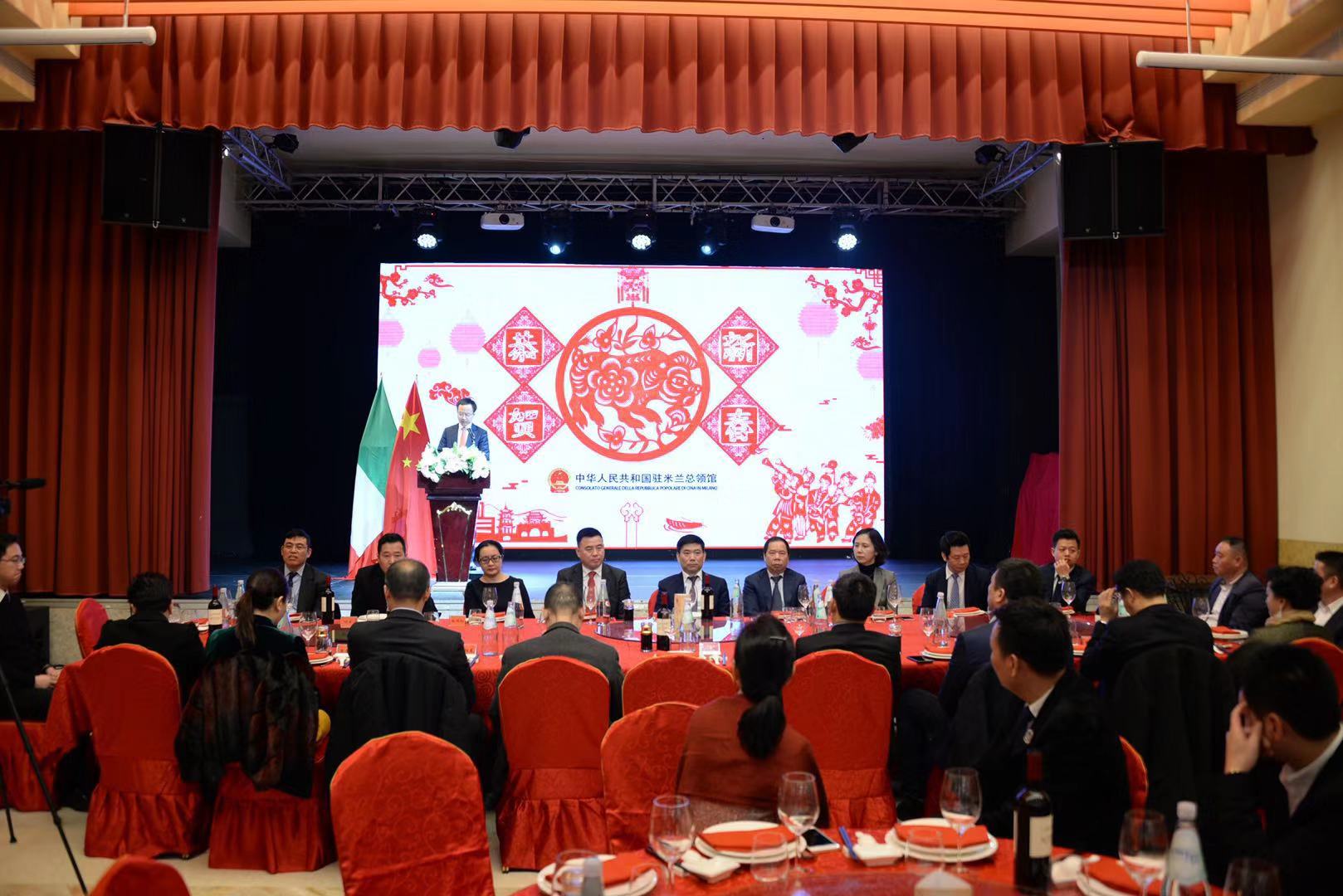 宋雪峰总领事在致辞中表示,展望2019年,我们将迎来新中国70周年华诞,这是中华民族伟大复兴进程中的重要节点,是全面建成小康社会的关键之年。习主席指出 “2019年,有机遇也有挑战,大家还要一起拼搏、一起奋斗”。宋雪峰总领事希望大家在新的一年里携手前行,开拓进取,为实现中华民族伟大复兴,为中意两国友好合作再立新功。