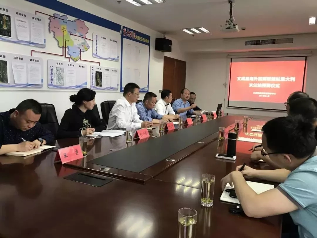 文成县投资促进中心副主任吴正川首先向海外特邀招商员介绍了该县招商投资环境和重大招商引资项目。王勇同志和包小荣副主任分别对我县经济扶持政策和招商联络站设置情况作了详细介绍。随后,李标为招商联络站意大利米兰站进行授牌,并向海外特邀商员颁发了聘书。