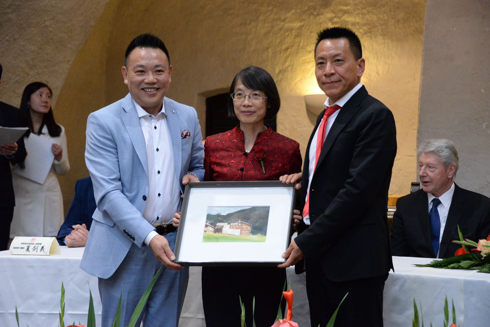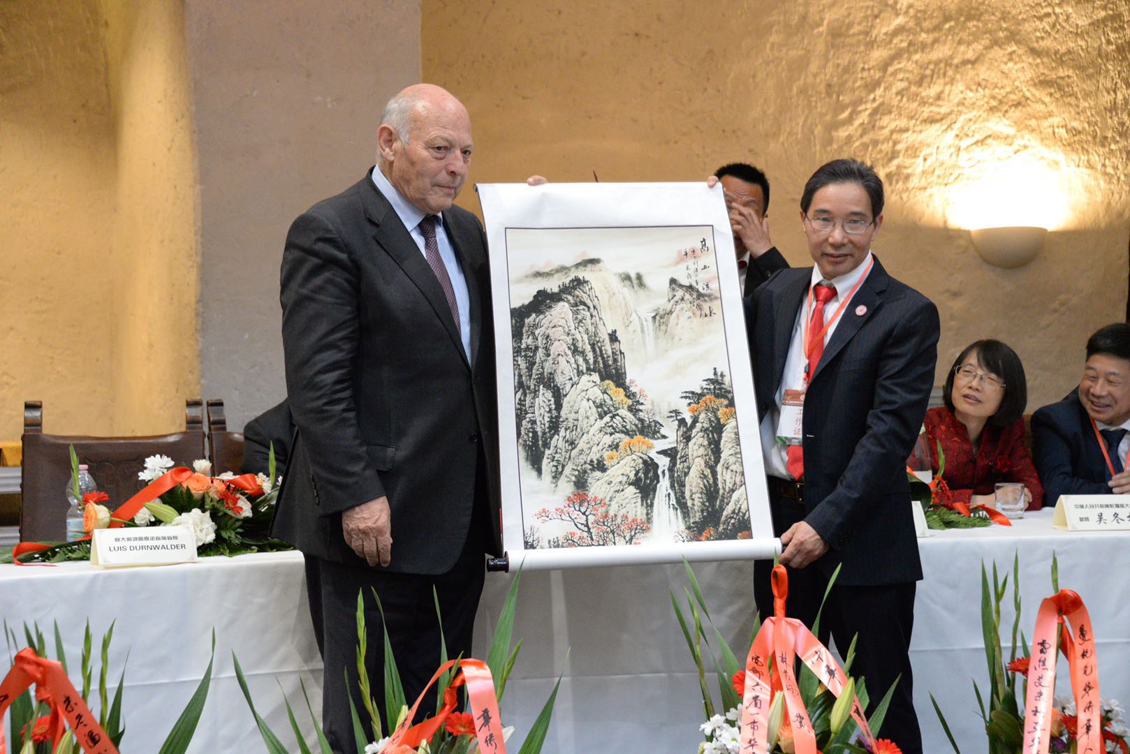 财务总监金焕杰先生为Altoadige前任省长Durnwalder先生赠送礼品