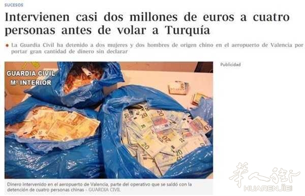 华人携带巨款过境被西班牙警方查获的例子数不胜数,近些年来就发生了多起。