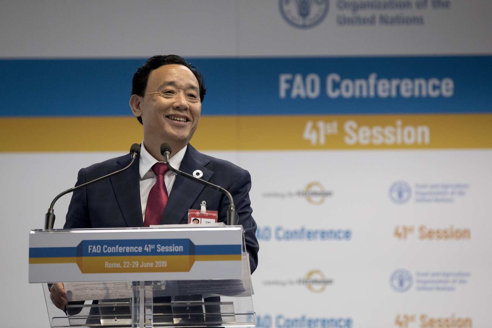 意大利《华人街》孙玮报道:罗马时间23日,在第41届联合国粮食及农业组织大会上,中国提名的候选人屈冬玉当选为第九任总干事。这是中国人首次担任该组织总干事一职。当天,各成员国以一国一票的方式进行无记名投票。屈冬玉获得108票,有效当选。新任总干事的任期为2019年8月1日至2023年7月31日。 屈冬玉1963年出生,现任中国农业农村部副部长,毕业于荷兰瓦赫宁根大学遗传育种专业,拥有遗传育种博士学位。屈冬玉曾多年从事马铃薯遗传育种和生物技术研究工作,获“世界马铃薯产业杰出贡献奖”。 粮食及农业组织(粮农组织)是联合国的一个专门机构,致力于保障粮食安全,实现
