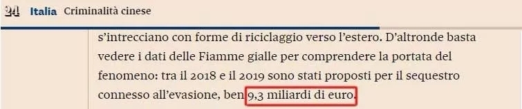 逃税行为和跨境洗钱之间的关联引起有关部门高度关注,报道称,部分华人企业家使用非法手段偷漏税款,而且也涉及雇佣非法劳工。通过意大利税务部门的检查,令人惊讶的一幕出现了。仅从税务部门提供出的数字上就可以了解到这一现象的严重性:自2018年至2019年,涉及偷漏税而扣押的资产高达93亿欧元。