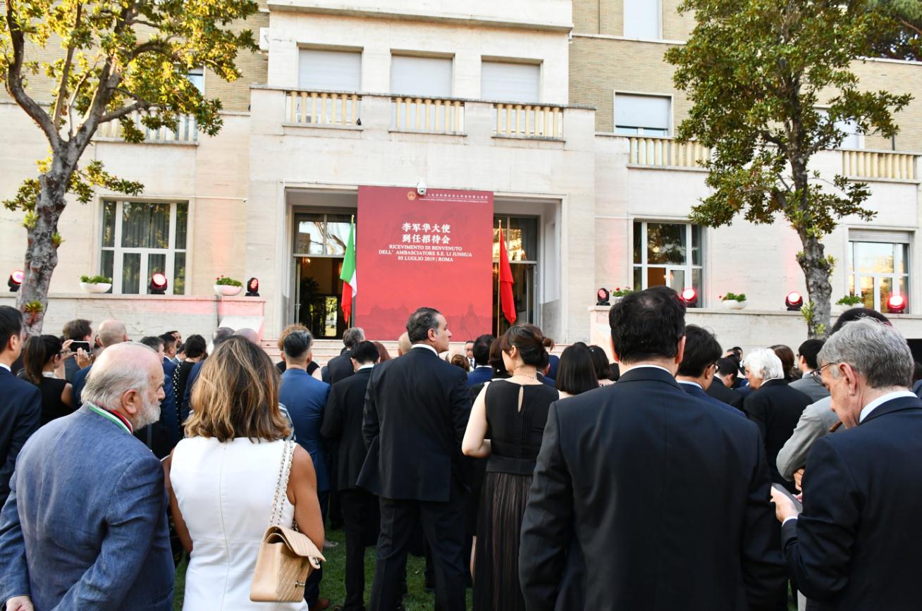 意大利《华人街》孙玮报道:7月5日,风和日丽,中国驻意使馆在使馆大草坪举行李军华大使到任招待会,意大利政府重要官员参议长卡塞拉蒂、财政部长特里亚、总统外交顾问达雷桑德罗、外交部秘书长贝洛尼、前总理达莱马等,以及多国驻意使节,以及华人华侨、中资机构、留学生代表约400人出席。
