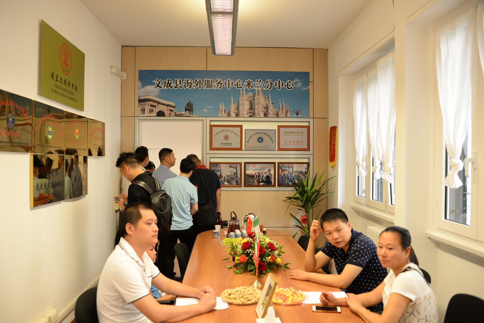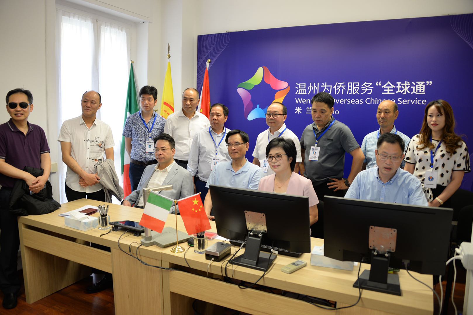 意大利《华人街》消息:7月13日,浙江省委常委、统战部长熊建平率领省侨联主席连小敏,温州市委常委、统战部长施艾珠,丽水市委常委、统战部长王小荣,省委统战部侨务二处处长杨金坤一行来到文成县海外服务中心米兰分中心参观办件。