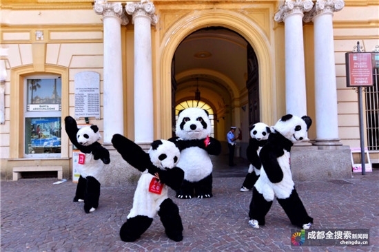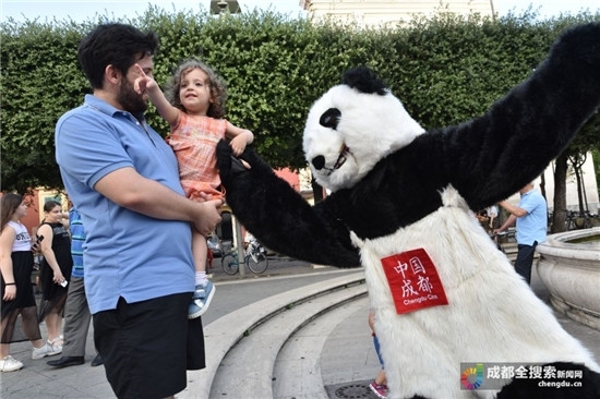 成都“熊猫宝宝”空降意大利街头 发出来自熊猫故乡的邀请