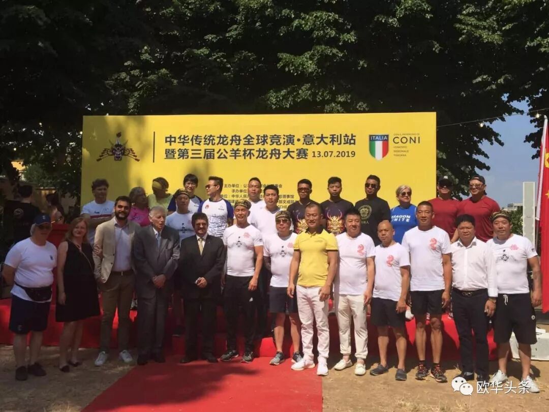意大利《华人街》报道(记者 一策):为了庆祝伟大的新中国成立70周年,借助一带一路的伟大契机,迎接中意建交50周年,促进中意文化交流。2019年7月13日,在中国驻佛罗伦萨总领馆的指导下,由公羊会联席会议理事会主办,意大利公羊会承办,欧洲福建侨团联合总会、意大利中部文成同乡会协办的中华传统龙舟全球竞演意大利站暨第三届公羊杯龙舟大赛在美丽的意大利佛罗伦萨阿诺河畔如期举行,此次龙舟赛有意大利队和中国队共同参与: Marinai d’Italia、Donne in rosa、Gli amici delle cugine、Tassiste fiorentine、 Canottieri Firenze1、Canottieri Firenze2、普拉托青龙俱乐部、欧洲青年企业家协会队、意大利公羊队、托斯卡纳健康俱乐部队、意大利罗马华人龙舟俱乐部队、法国巴黎华人龙舟队。