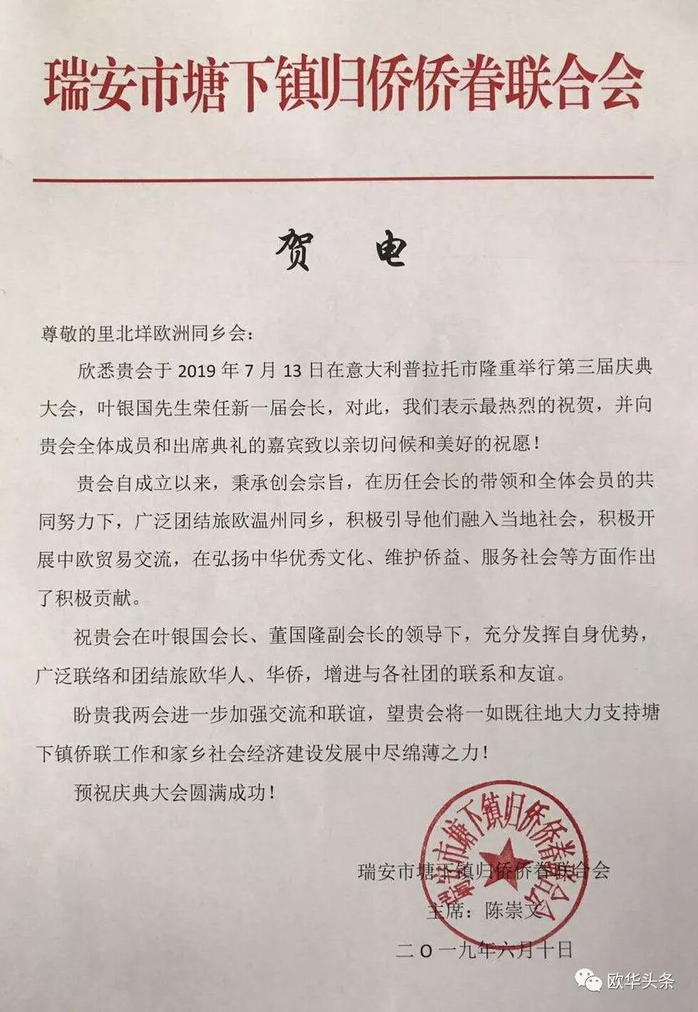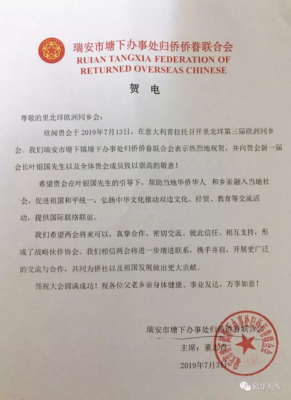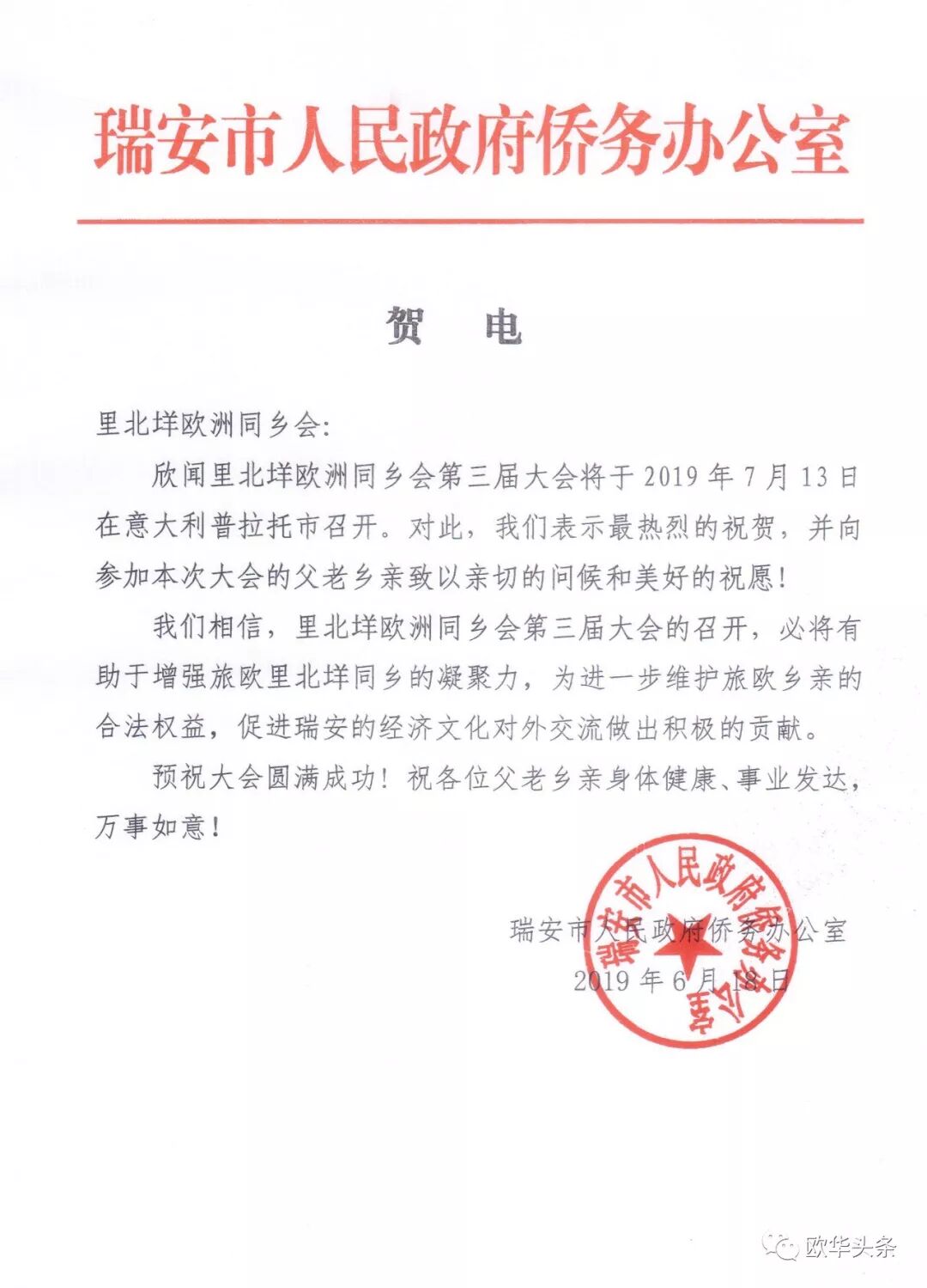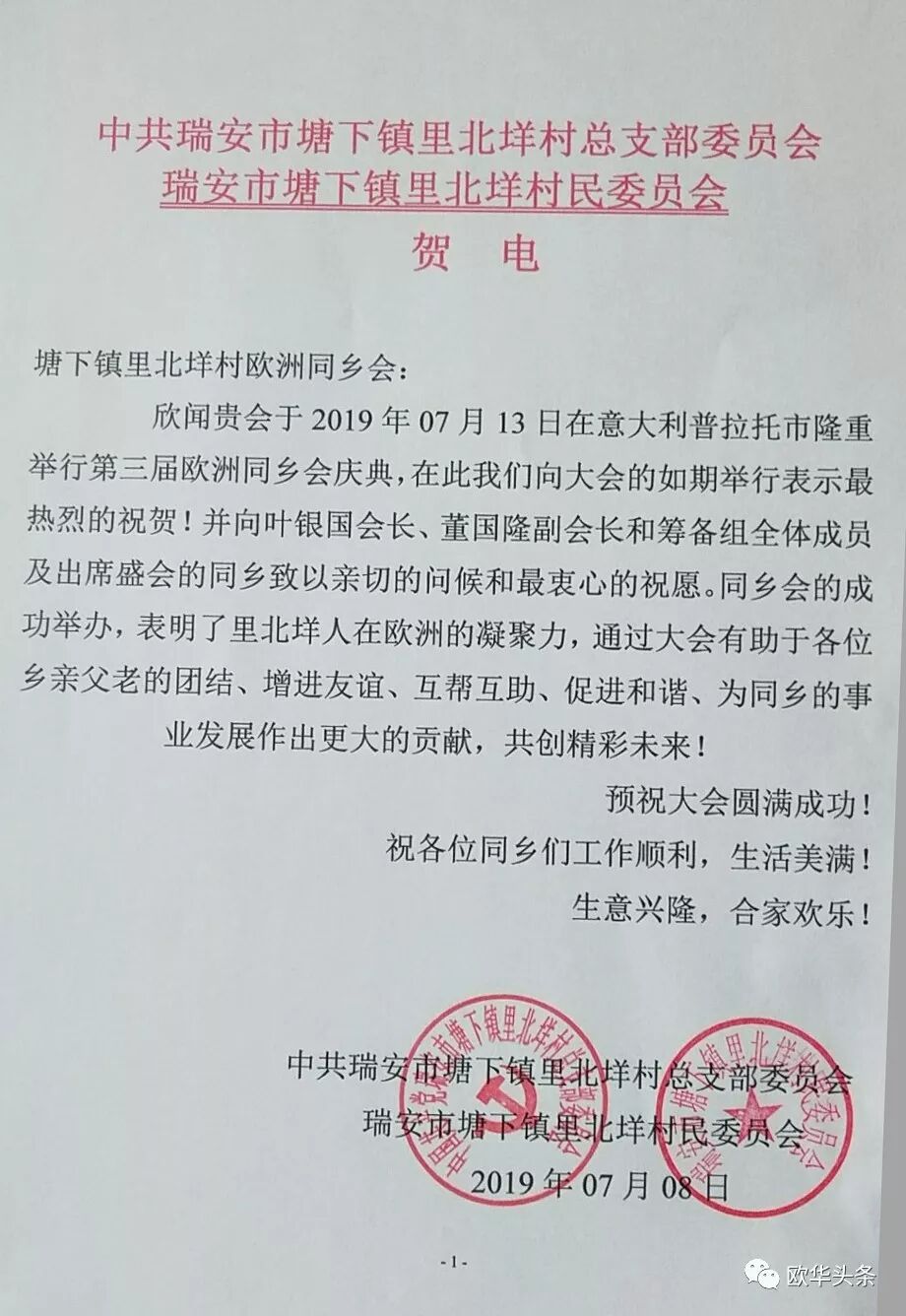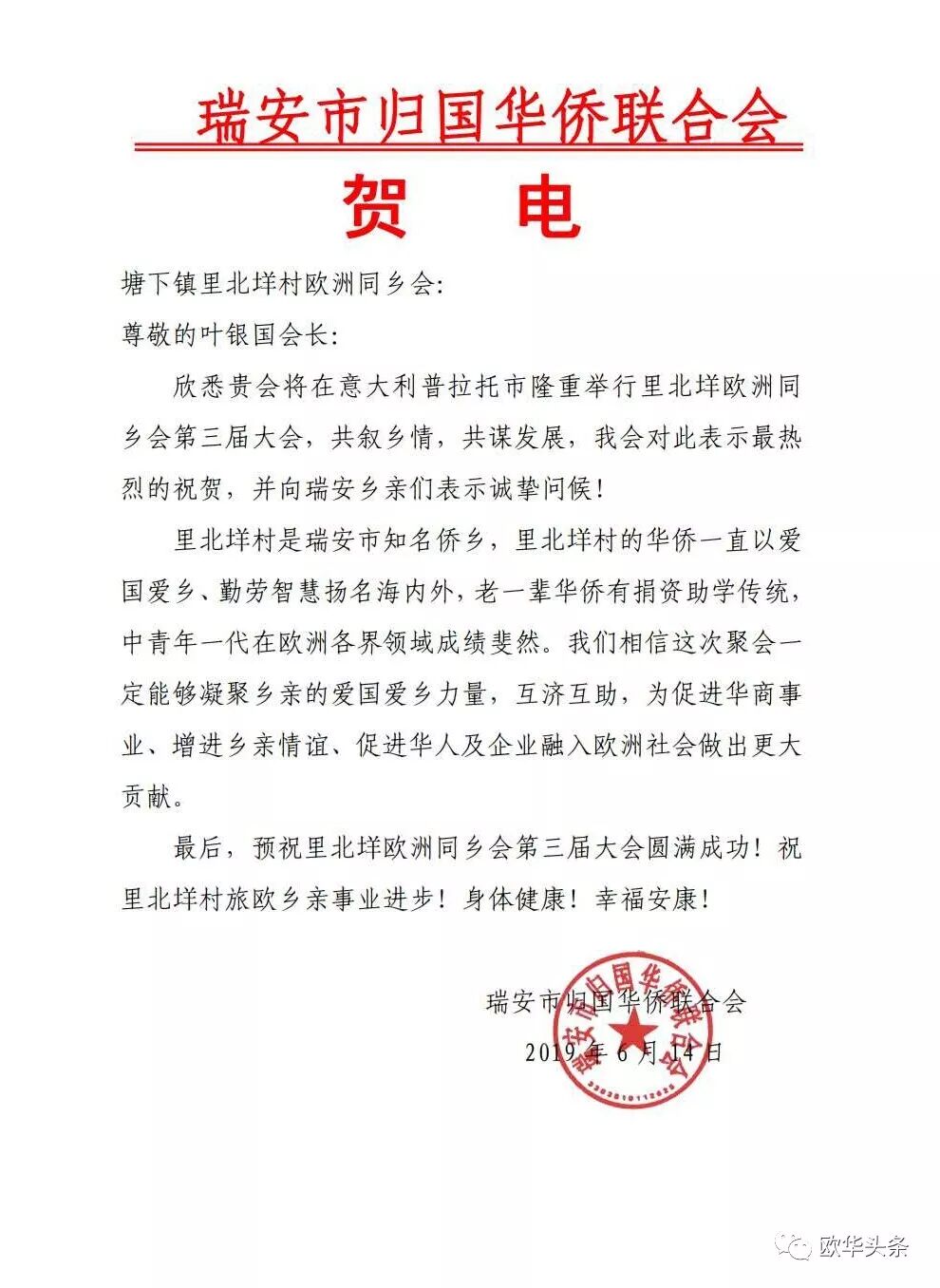 意大利《华人街》报道(记者 一策)参天大树,必有其根。2019年7月13日,第三届欧洲里北垟同乡会在意大利普拉托市隆重举行,来自法国、西班牙、德国、荷兰等欧洲各国的同乡们500余人汇聚意大利,怀着乡情最珍贵的情怀,本着"互叙乡情,共创辉煌"的共同目标走到了一起。