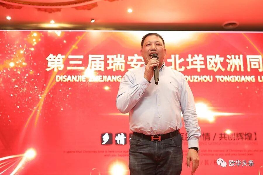 新一届会长叶银国在同乡会上首先对远到而来的老乡们表示热烈的欢迎和衷心的感谢! 叶银国会长感慨能够举办同乡联谊会这样的机会来之不易,希望大家要珍惜,同乡联谊会不仅是我们沟通的平台,也是求发展的平台,同时也非常感谢筹备组兄弟们的大力支持与配合,并衷心祝愿第三届欧洲里北垟同乡会圆满成功!