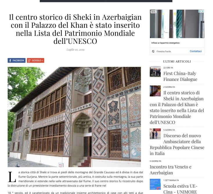 您的位置 > 首页 > 意大利 意大利媒体发布关于舍基可汗宫殿的文章 来源: 阿新社 | 2019-07-16 | 👁:14484 阿新社罗马7月16日报道 意大利媒体发布了关于舍基历史中心及可汗宫殿被列入列入联合国教科文组织世界遗产名录的文章。 据阿新社报道,Azerbaijan News新闻门户网站以及由意大利欧洲新闻社特约记者卡罗·莫里诺创建的eurasiaticanews新闻门户网站发布了该文章。 文章介绍了十八世纪舍基可汗宫殿的详细信息。 宫殿建于1848年至1851年,1955年-1965年及2002年进行了修复。 每天都有数百名游客来到这里,欣赏美丽和建筑风格独特的宫殿。 标签: 暂无标签 上一篇 男子“黑”入公司账户转走8000欧元 ❤️ 赞一个 (0) 🔗 分享 用户评论 (0) 暂无评论,快来抢沙发吧!首评可提升互动曝光。 登录 后参与互动