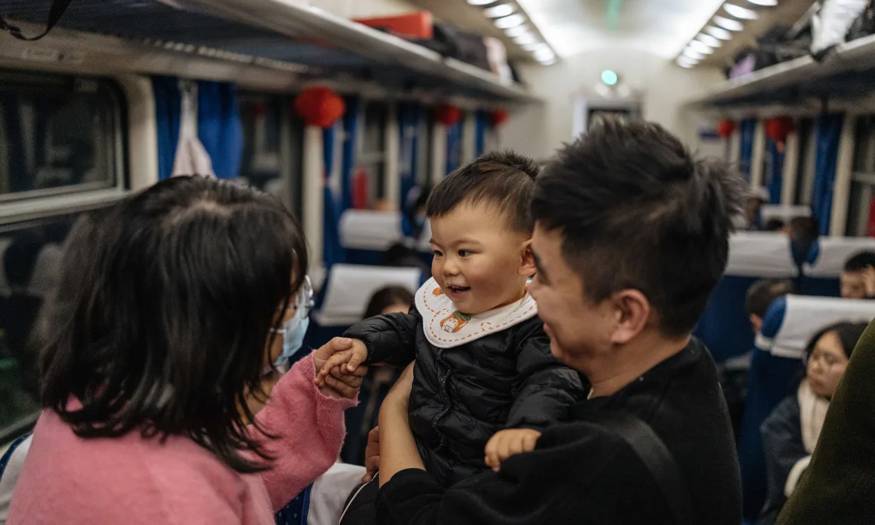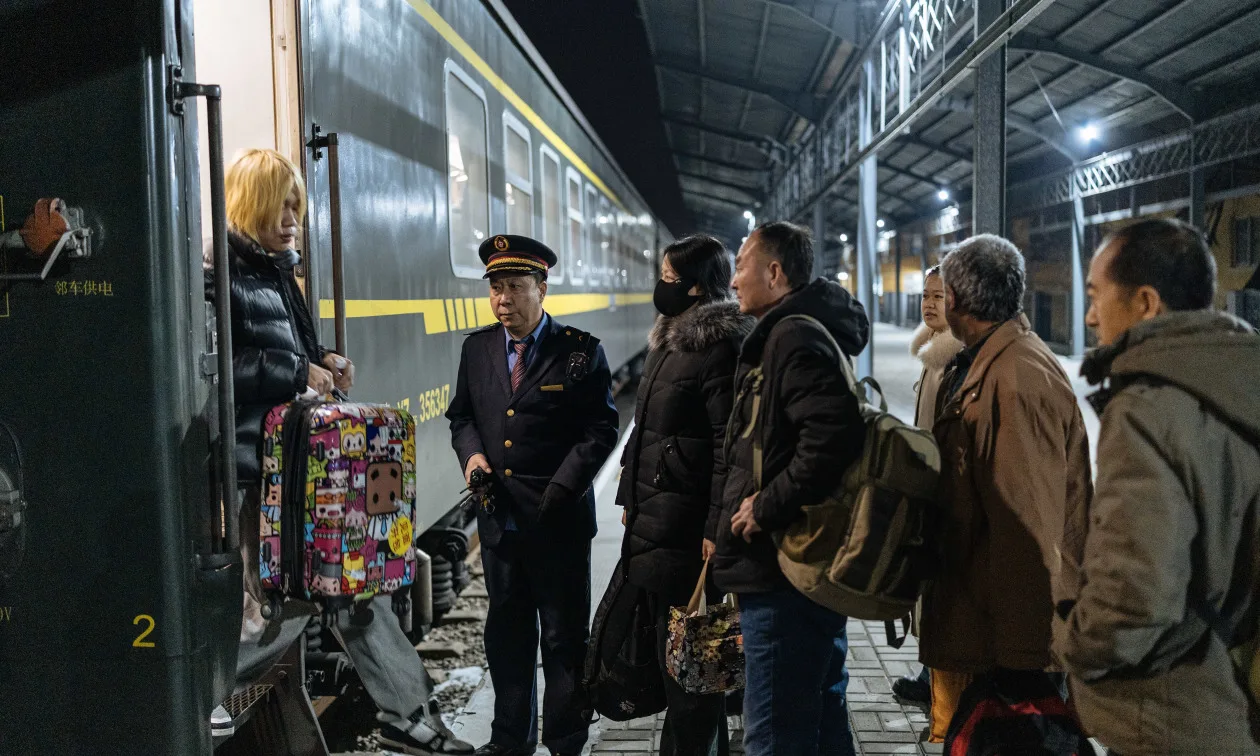 这列“慢悠悠”的绿皮火车,载着在北京务工、求学的人们踏上归家的旅程。车厢里,认识的、不认识的乘客都热络地攀谈起来,笑声不断,宛如年夜饭桌上亲朋好友围坐在一起的热闹景象。