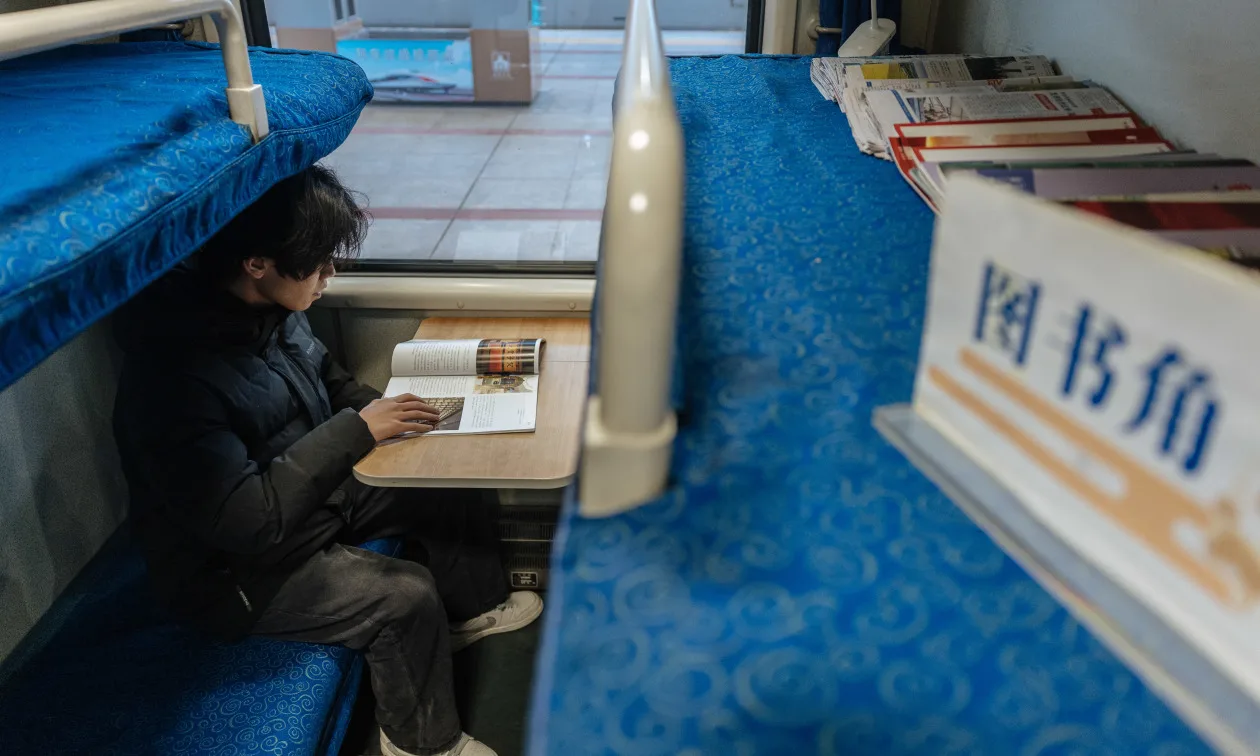 57岁的杨大哥坐在卧铺车厢靠窗的凳子上,悠闲地看着窗外风景。他在北京水泥厂工作已十多年,当晚将在王安镇站下车。“票价只要20多块钱。小站都停,车开到镇上,下了车走回家就行。”他笑着说:“车虽慢,但很温暖。”