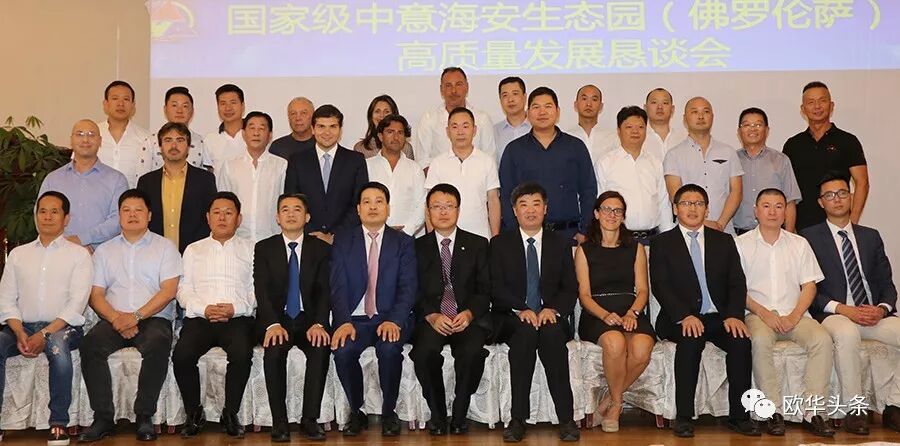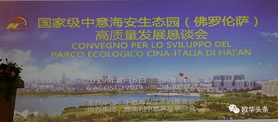 意大利《华人街》讯(记者一策):2019年8月6日,在江苏省海安市委常委、海安经济技术开发区党工委常务副书记严长江率领下,海安经济技术开发区重大项目办公室主任孙宝军、海安经济技术开发区招商局局长储瑞明、 海安经济技术开发区中意海安生态园驻意大利代表处首席代表叶序浪、海安经济技术开发区招商局副局长杨洋一行在著名的欧洲文化名城意大利佛罗伦萨市举行中意海安生态园(佛罗伦萨)高质量发展恳谈会。中国驻佛罗伦萨总领馆领事部主任颜金林,SESTO副市长 SILVIA BICCHI,意大利中意青年联合会、佛罗伦萨华人华侨联合总会、佛罗伦萨华人华侨商贸联谊会、意大利中华炎黄文化研究会、佛罗伦萨中意文化交流协会、意大利中国和平统一促进会、旅意华企文化交流协会、意大利中部浙江商会、 旅意福建华人华侨同乡总会、旅意华企文化交流协会、公羊会意大利总会、欧洲中华少数民族联谊总会、意大利中部文成同乡会、意大利中部瑞安华侨华人总会等意大利当地华人社团、知名企业家,及华文媒体记者近200人出席。
