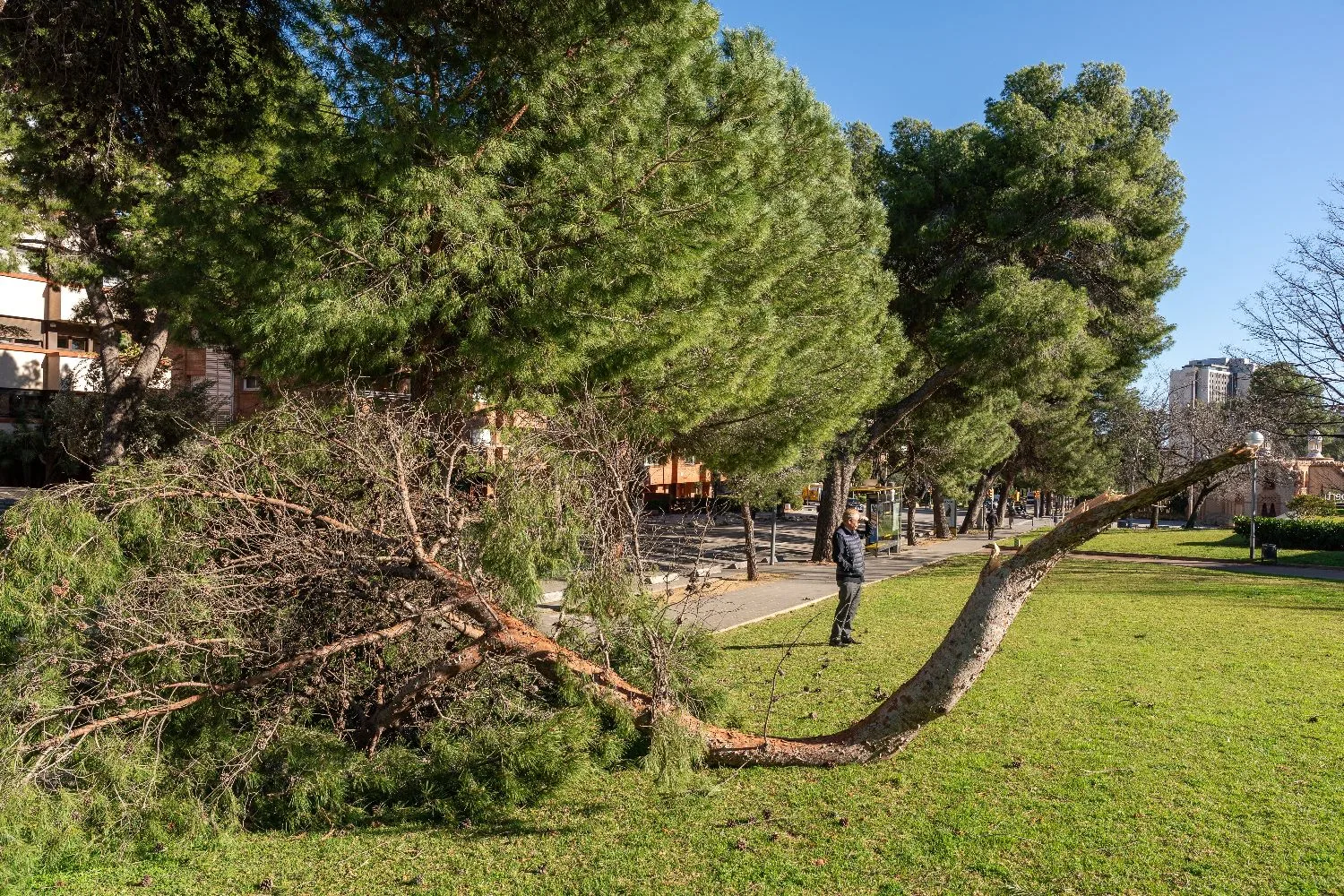 2月12日,在西班牙帕列哈镇,一棵松树的树枝断裂。