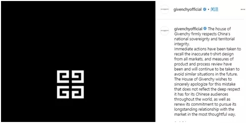 纪梵希在官方微博上发布致歉声明,称“纪梵希品牌一贯尊重中国主权,坚决拥护一个中国原则,坚定不移。”