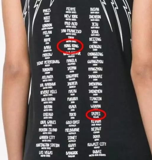 范思哲的事情还没完,今天,又有网友曝出美国品牌蔻驰(coach)和法国奢侈品牌纪梵希(Givenchy)的T恤也将香港和台湾列为国家。