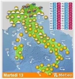明日(13日),意大利东北部部分地区将出现降雨甚至冰雹天气,北部地区在夜间气温将有所下降。但其余大部分地区,特别是中南部地区仍持续高温天气,多地气温仍可高达39℃-41℃。红色高温警报在6座城市拉响:罗马、坎波巴索、弗罗西诺内、佩鲁贾、列蒂和巴勒莫。