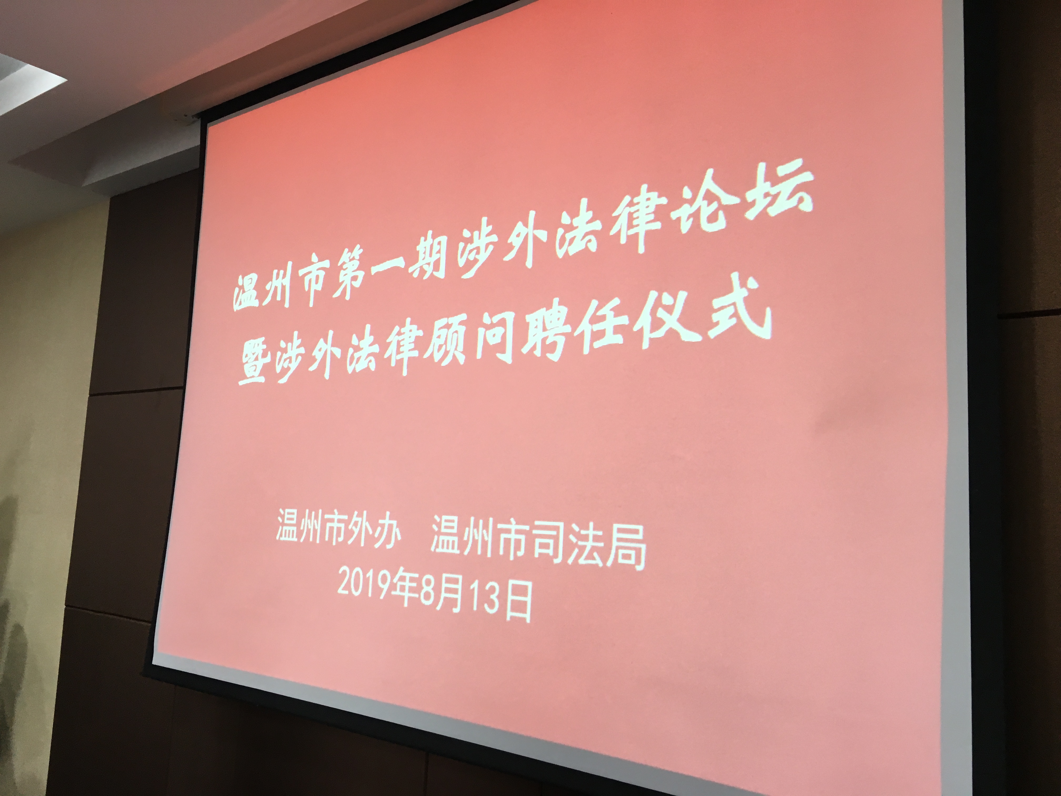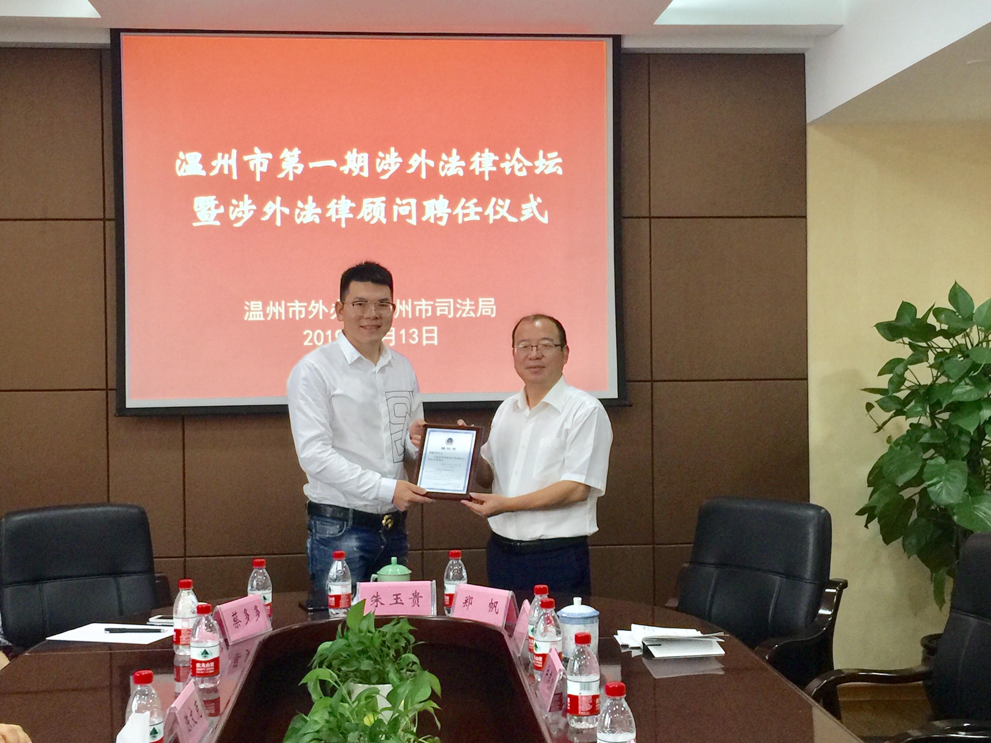 意大利《华人街》据温州市外办消息:8月13日上午,温州市外办为意大利米兰郑帆律师事务所郑帆律师颁发法律顾问聘书。这是温州市海外领事保护工作领域又一项率全国之先的为民举措。市外办副主任朱玉贵、市司法局相关处室负责人以及来自我市律协约十五名行业骨干出席会议并参加了随后举行的温州市第一期涉外法律论坛。
