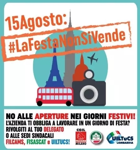 在8月15日这天照常开门的还有Arese、Citylife、Vulcano、San Giuliano、Bicocca等米兰多家购物中心,麦当劳也不例外。工会方面对此恨得咬牙切齿,一直呼吁工人在这天罢工“我们一直呼吁相关部门应对商家营业进行更严格的监管,8月节让员工上班是非法的,劳动法没有规定工人在假期上班的义务!”