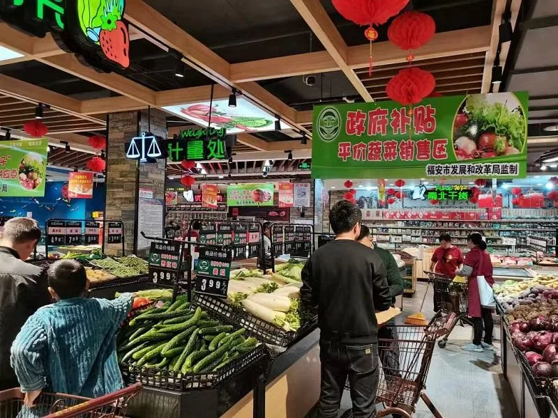 宁德福安一家超市内的平价蔬菜销售区。图片来源:今日福安