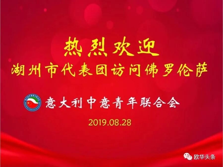 意大利《华人街》讯(记者一策):2019年8月28日,在湖州市人大常委会副主任熊全龙率领下,湖州市人力资源和社会保障局调研员沈福群、湖州市人力资源和社会保障局处长王伟明 、吴兴区人力资源和社会保障局副局长陆培红、中共安吉县委组织部副部长、两新工委书记董良、安吉县人力资源和社会保障局副局长董秀忠一行六人访问意大利佛罗伦萨,受到意大利中意青年联合会及意大利各大华人社团的热烈欢迎,中国驻佛罗伦萨总领馆王文刚总领事、意大利中部各大侨社的侨领代表、精英企业家、各界友好人士、新闻媒体等150余人参加了欢迎会。