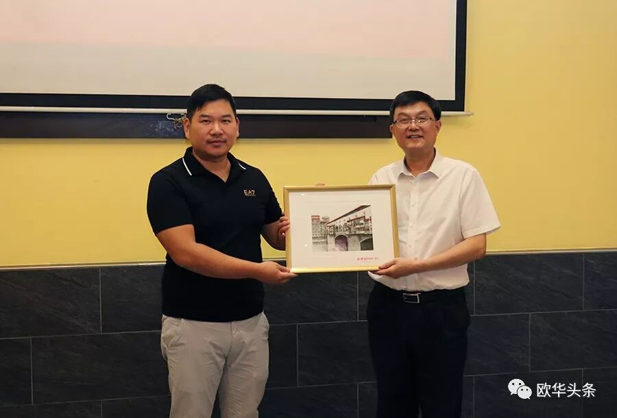 ▲湖州市代表团向意大利中意青年联合会赠送纪念品