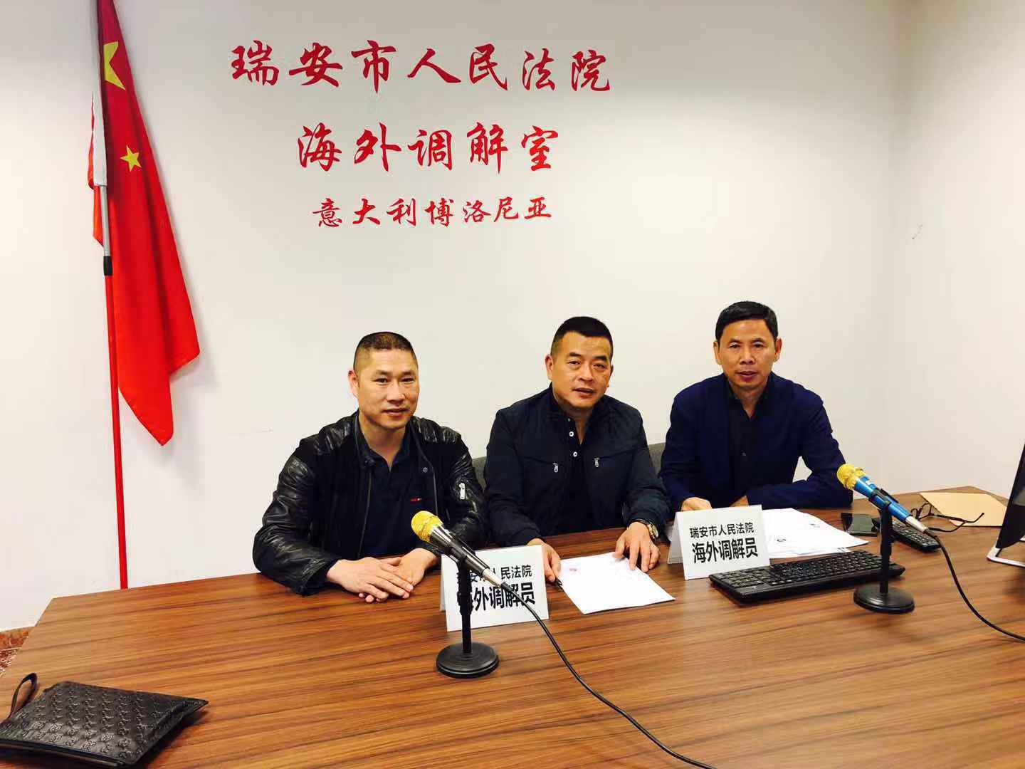 为维护海外侨民的合法权益,公开、公正审理涉侨民商事案件,有效化解涉侨矛盾纠纷,节约司法资源。瑞安市人民法院根据浙江省高院和温州市中院的指示,于2014年在意大利博洛尼亚设立瑞安市人民法院海外调解室。