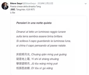 想更深入地了解中国文化,他还特意学了唐诗《静夜思》。