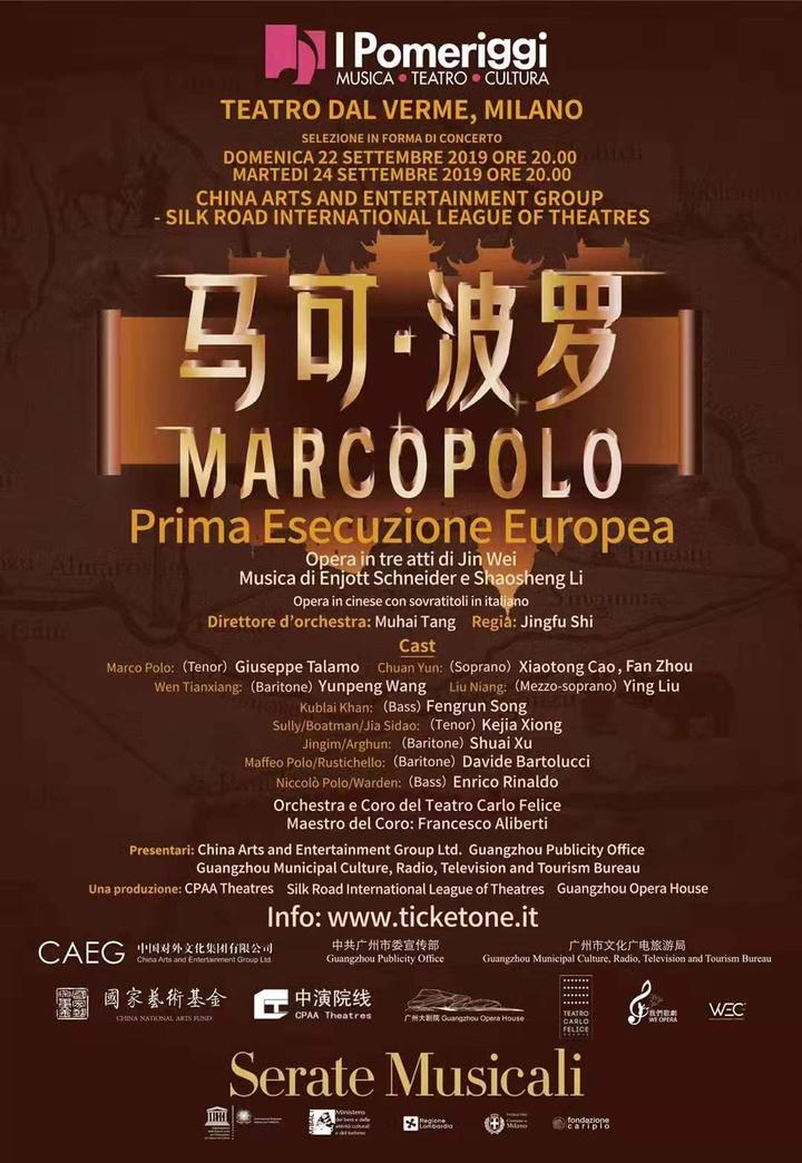 歌剧《马可·波罗》是一部由中文演唱的三幕歌剧,全长168分钟,波澜壮阔的史诗格局,荡气回肠的爱恨情仇,彰显了丝绸之路的文化价值和人文风采,抒发了对人类和平、世界和谐的赞美和祈颂。