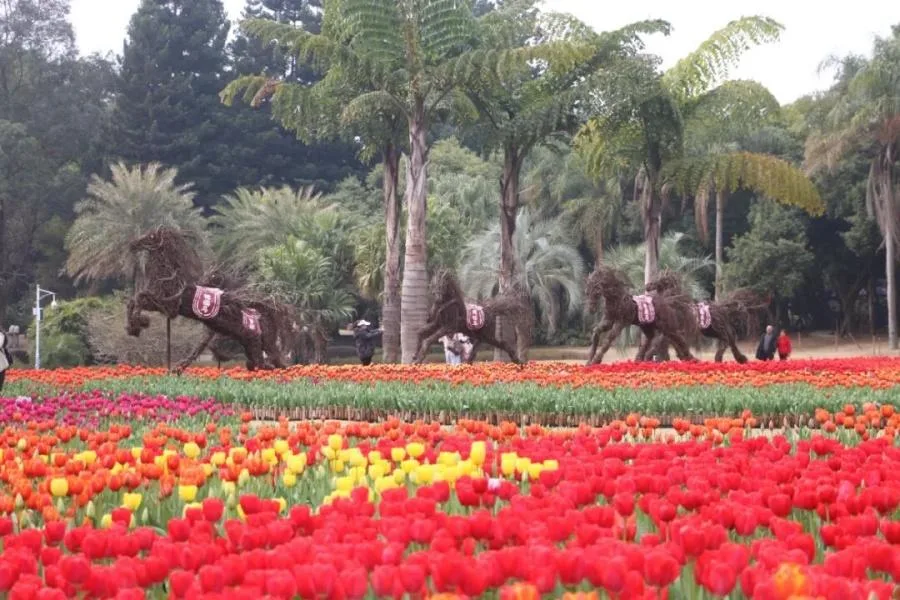 东南网2月13日讯(本网记者 林夏悦)新春将至,福州植物园推出“榕马献瑞 郁福呈祥”主题花展。展览以榕树气生根塑造“榕马”献祥瑞,以15个热门品种、“世界火”“金检阅”“糖果王子”等八万余株郁金香打造“郁(遇)福”花海,通过自然景观、本土文化与人文寓意的深度融合,营造出“百福齐聚、万事顺遂”的生动迎春氛围。