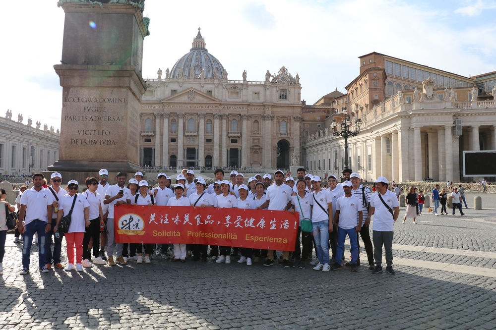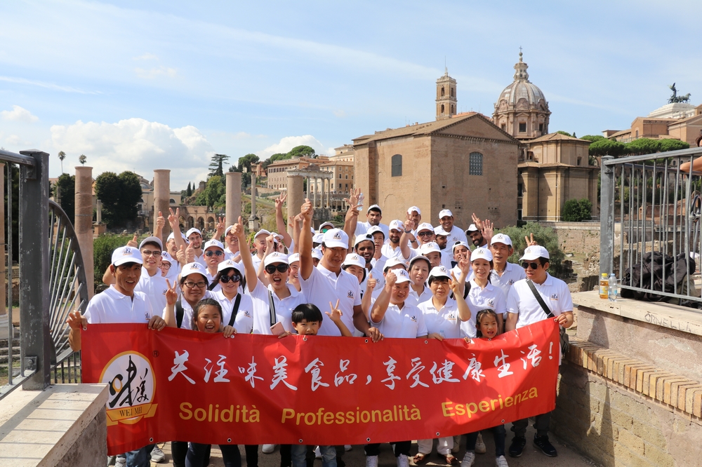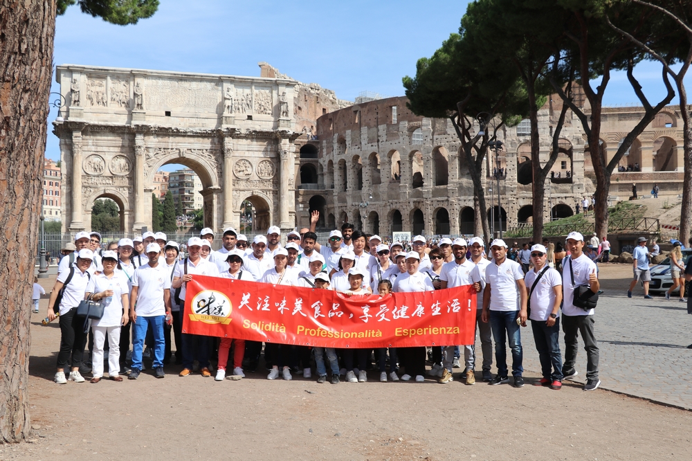 意大利《华人街》消息:正值新中国成立70周年到来之际,远在意大利的欧洲食品企业味美集团(ITACI)9月21日组织全体员工集体前往罗马度假旅游,以表彰员工爱岗敬业和为公司业务工作的辛勤付出。此次罗马游的景点有斗兽场、古罗马广场、梵蒂冈教堂、圣彼得堡、纳奥纳广场等,由于平时工作繁忙,大家非常感谢公司能组织这样的活动,既开阔了视野,又陶冶了情操,还让公司里的华工和外籍员工能更加相互了解、增进友谊、和谐工作。
