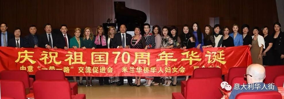 意大利《华人街》消息:2019年9月26日晚,由意大利伦巴第大区政府、意大利轮盘协会、意大利米兰华侨华人妇女会、意大利中意一带一路交流促进会、意大利大眼睛国际视野有限公司等单位联合主办的《我和我的祖国》——女高音歌唱家尤泓斐米兰独唱音乐会在米兰Piazza duca D'AOSTA 3 号的音乐厅举行,歌唱家尤泓斐用最美的歌声向祖国七十华诞献礼,庆祝中华人民共和国成立七十周年。