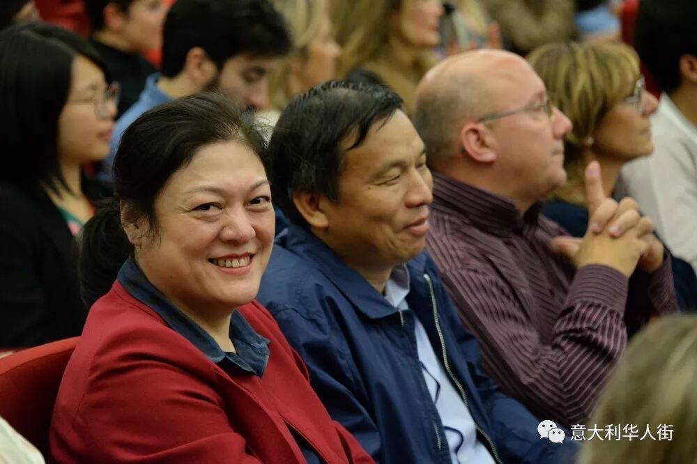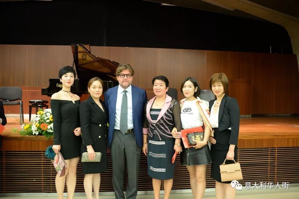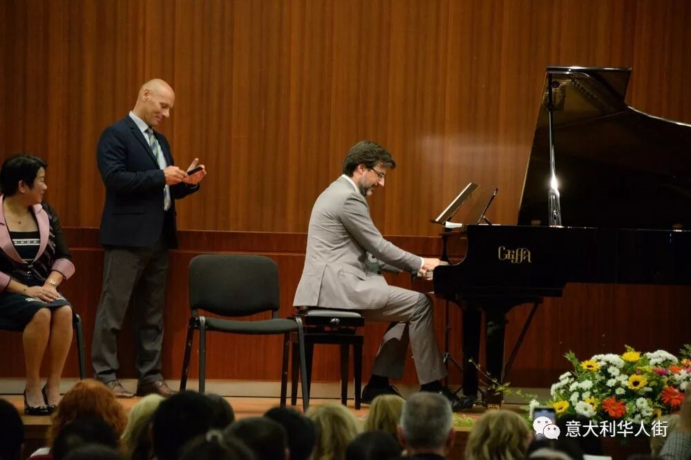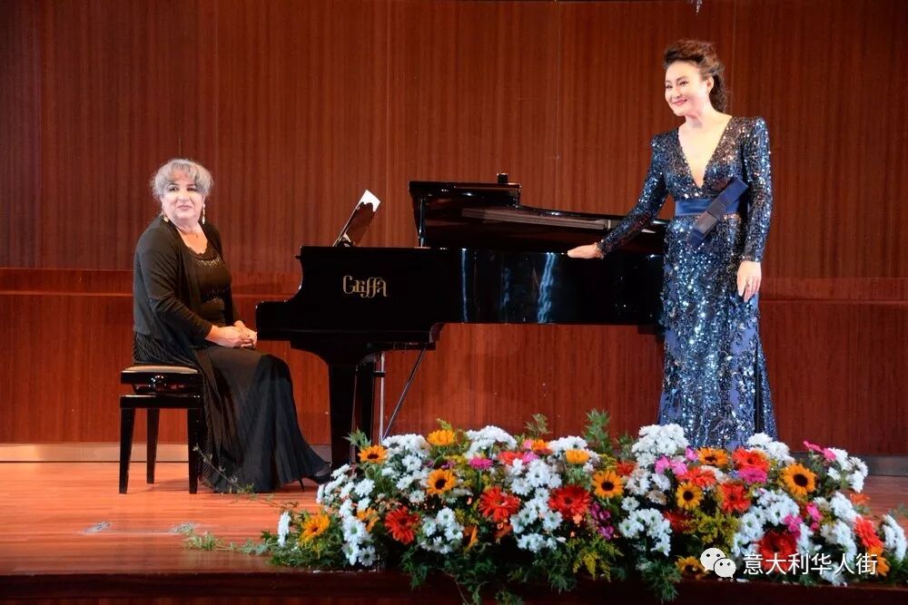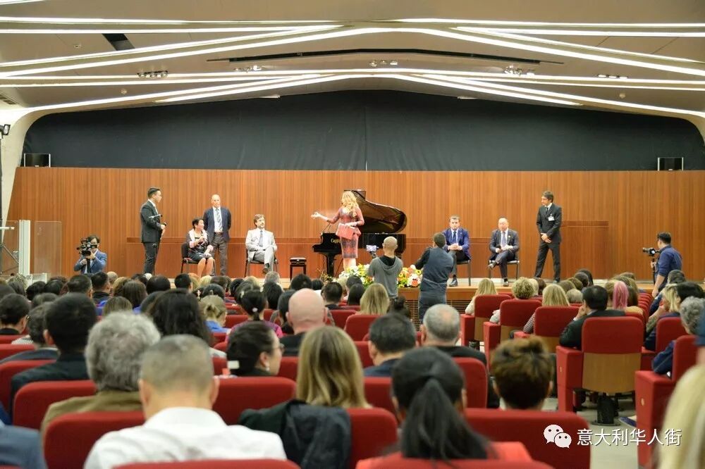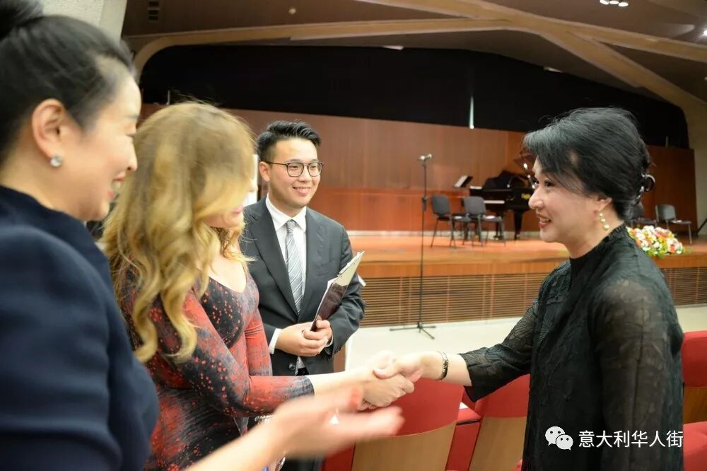 音乐会现场还来了一位重量级嘉宾——金星,金星用一口流利的意大利向意大利观众介绍了自己,她和她的老公及朋友是特地从上海赶来参加闺蜜——尤泓斐在米兰举行的音乐会。金星说:在这举国欢庆新中国成立七十周年之际,来米兰参加音乐会是非常有意义的,也感到特别高兴。中国和意大利在文化方面有许多相同之处,意大利人和中国人都喜欢美食、喜欢音乐、喜欢艺术、喜欢电影。希望大家在这里度过一个美好而特别的夜晚。
