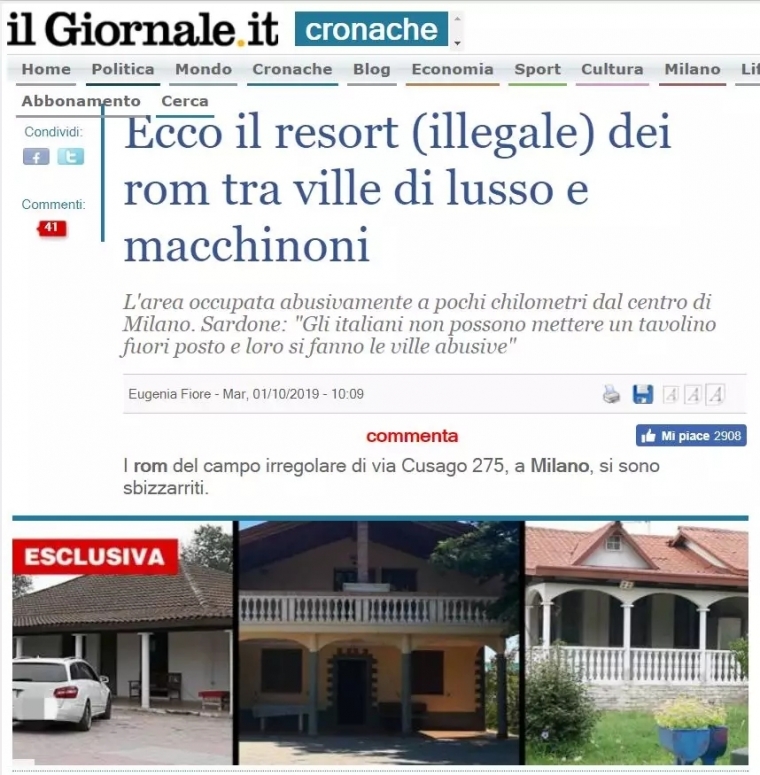 《意大利日报》2日报道,在米兰via cusago街上,有一处非法吉普赛营地,离市中心仅几公里的距离。而这并不是米兰市唯一的非法吉普赛营地。这些吉普赛人不仅非法占用了这片土地,还在里面建起了别墅豪宅。他们开着豪车,享受着富人的生活。报道称,这儿简直就是一个旅游度假村。