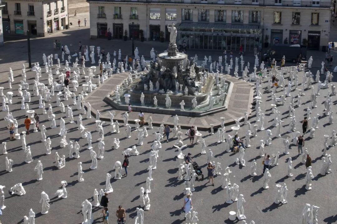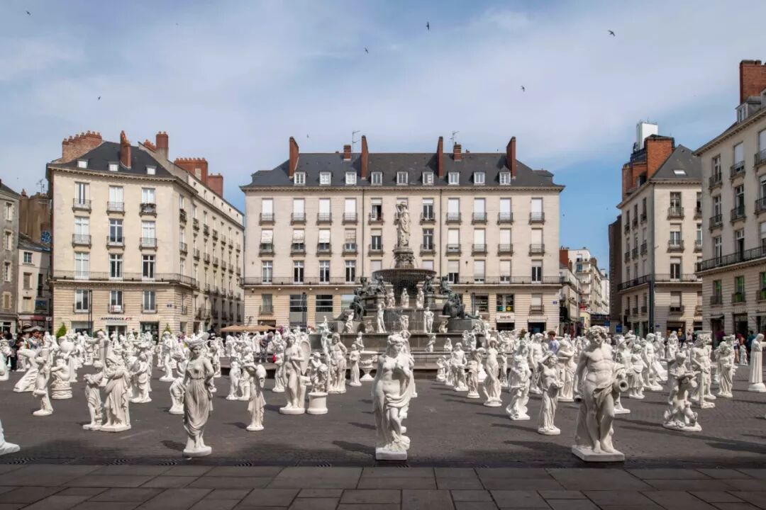 艺术家斯特凡 维尼(Stéphane Vigny)的大胆创新,将700件希腊女神,神话人物雕像,就像我们在花园中心看到的一样,安置在广场中央。斯特凡 维尼尽情享受这次城市舞台创作, 将经典的雕塑代码演绎的淋漓尽致。
