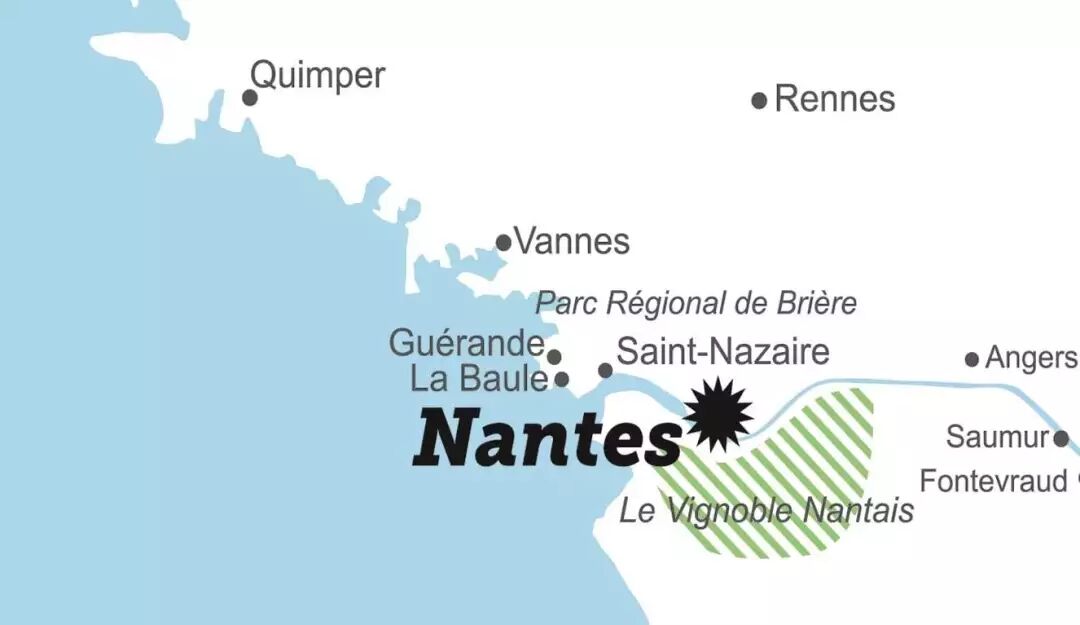 南特地处卢瓦尔河和大洋之间,拥有全世界最大的白葡萄酒葡萄园,园内种植单一品种葡萄苗木 : 世界闻名的优质白葡萄酒密斯卡岱。