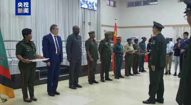 当地时间12日,赞比亚国防部为中国援赞第28批军事医疗专家组举行授勋仪式,授予11名组员“国际友好合作勋章”。