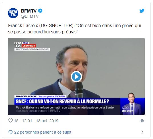 中午,SNCF-TER高层发表讲话称,这种被罢工的列车员们所谓的“突发的社会运动”明摆着就是“不做任何通知的罢工”。