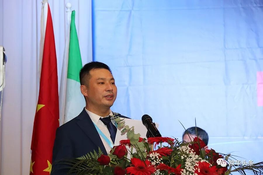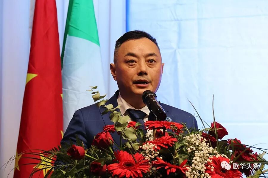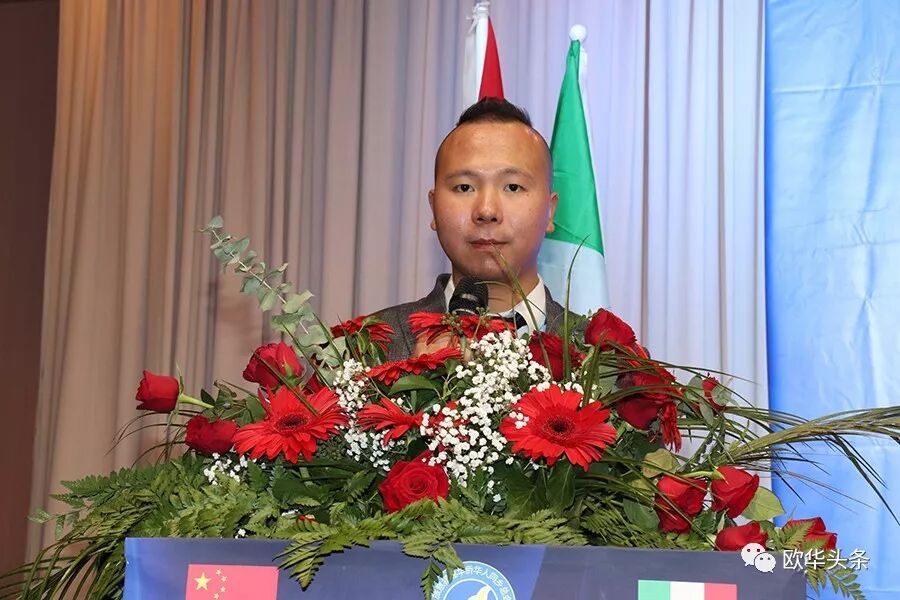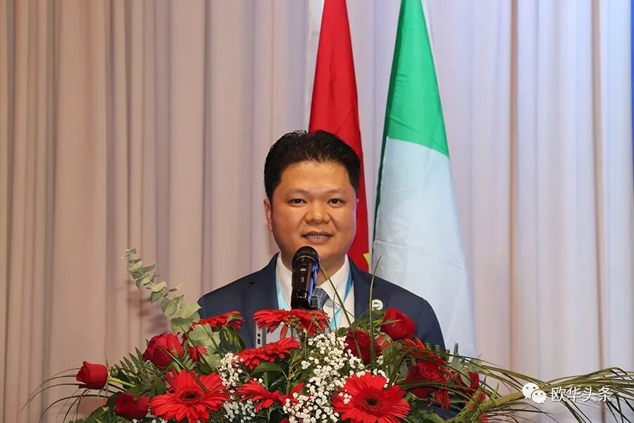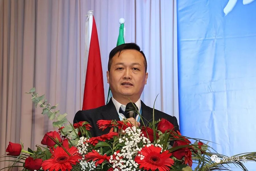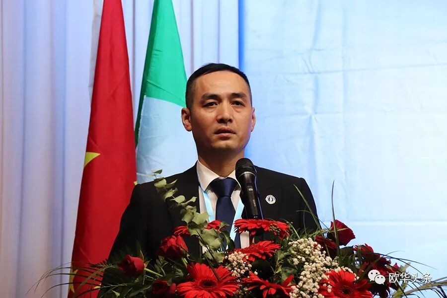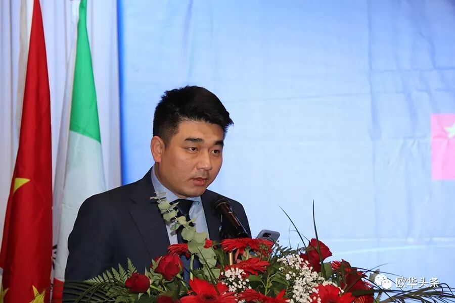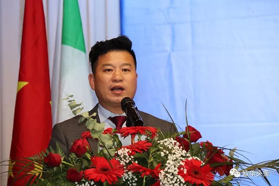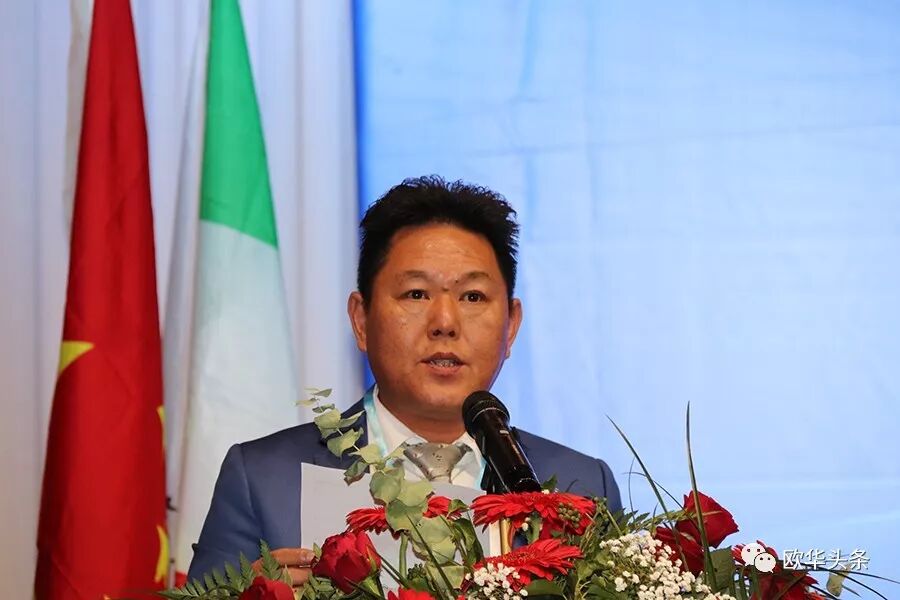 陈庸光代表欧洲华侨华人社团联合会向刘炳资会长及新一届领导班子表示热烈的祝贺,希望大家同心协力将旅意福建华侨华人同乡总会做强做大。