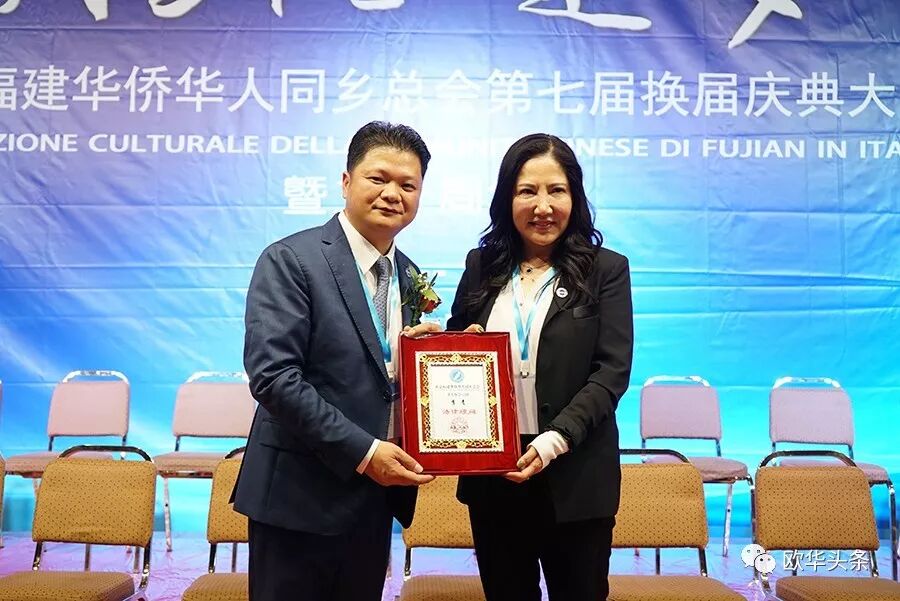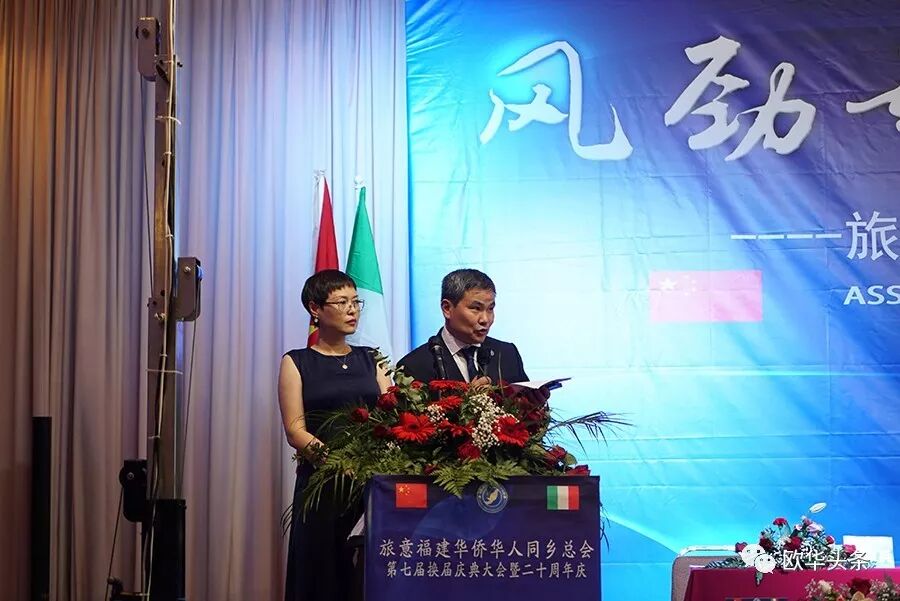 ▲第七届换届庆典大会由旅意福建华侨华人同乡总会顾问马莉娜和秘书长余序安共同主持,10月27日在意大利佛罗伦萨市拉开帷幕